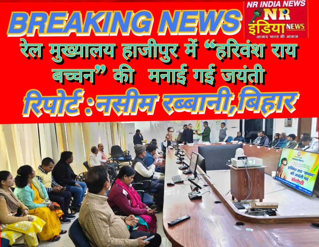 रेल मुख्यालय हाजीपुर में “हरिवंश राय बच्चन” की मनाई गई जयंती रिपोर्ट:नसीम रब्बानी, बिहार हाजीपुर-पूर्व मध्य रेल मुख्यालय, हाजीपुर...