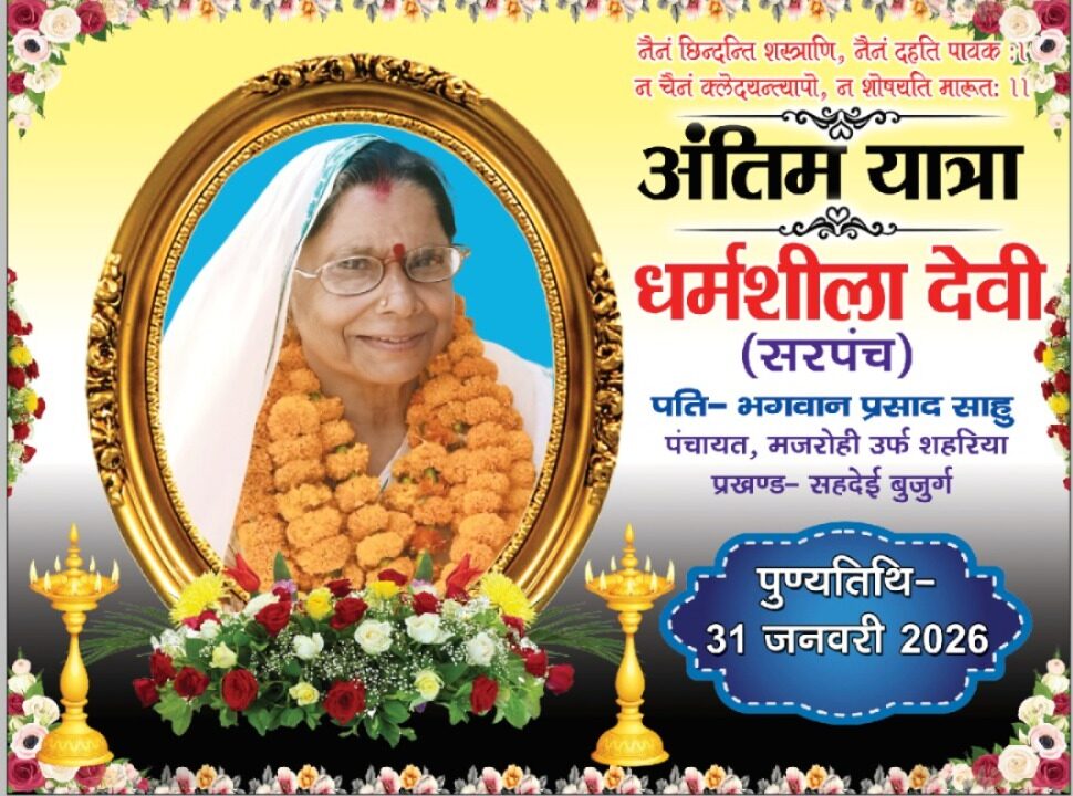 सरपंच धर्मशिला देवी के निधन पर क्षेत्र में शोक की लहर रिपोर्ट: सुधीर मालाकार, सहदेई बुजुर्ग (वैशाली) प्रखंड क्षेत्र के...