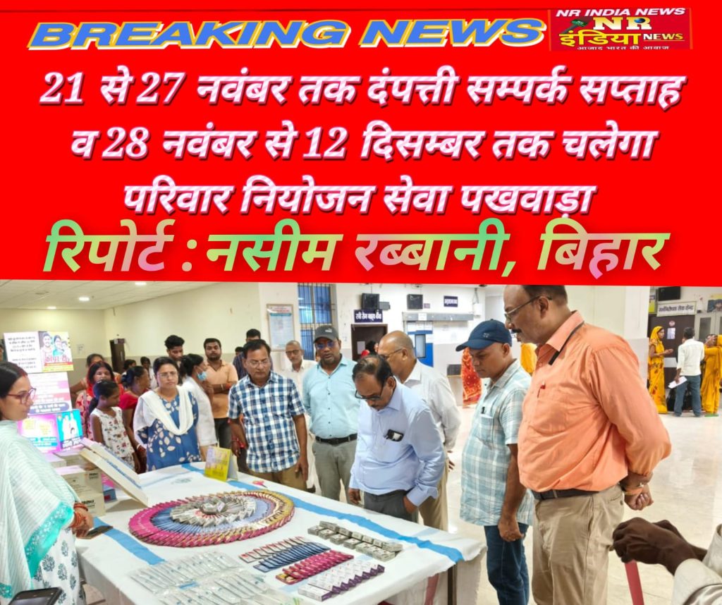 21 से 27 नवंबर तक दंपत्ती सम्पर्क सप्ताह व 28 नवंबर से 12 दिसम्बर तक चलेगा परिवार नियोजन सेवा पखवाड़ा...
