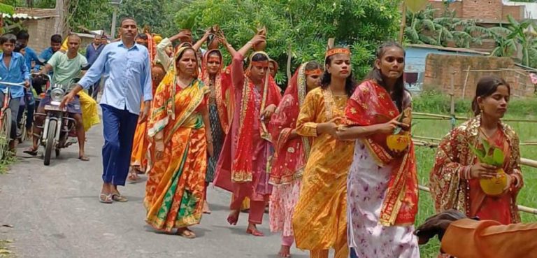 महुआ के पानापुर स्थित राधे कृष्ण मंदिर पर शोभायात्रा के साथ श्री कृष्ण जन्मोत्सव सत्संग शुरू कलशयात्रा में 751 महिलाओं...