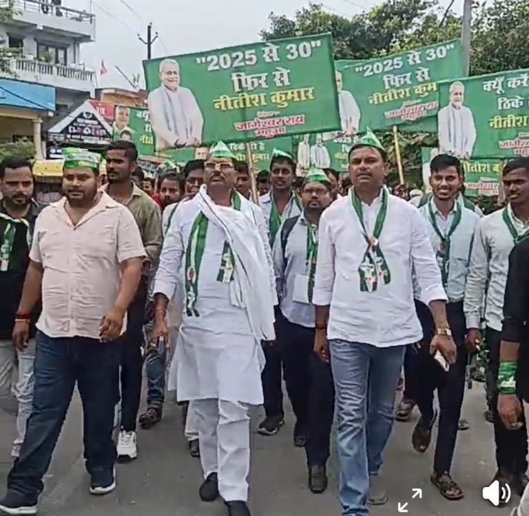 जागेश्वर राय हजारों समर्थकों के साथ पदयात्रा करते हुए एन डी ए सम्मेलन में पहुंचे। रिपोर्ट सुधीर मालाकार। महुआ...