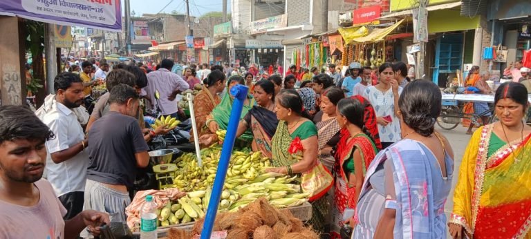 पूजन सामग्री के साथ विभिन्न फलों की खूब हुई बिक्री खरीदारों की भीड़ से महुआ बाजार हुआ गुलजार, महंगाई पर...