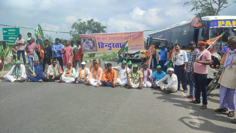 माँ के अपमान के विरोध में एनडीए कार्यकर्ताओं ने गोरौल चौक पर एन एच 22 को पूर्णतः जाम कर दिया....