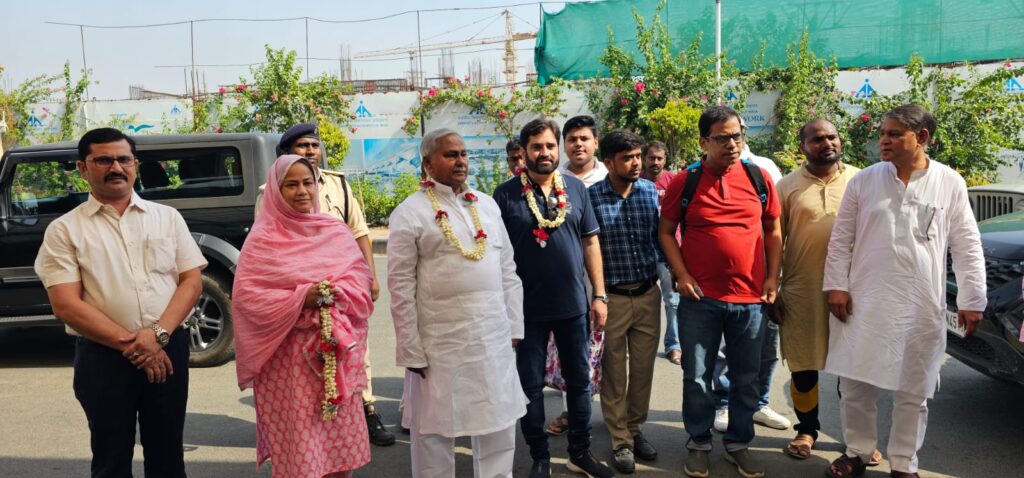 • हज के लिए रवाना हो रहे इलियास हुसैन व आसमा परवीन को एयरपोर्ट छोड़ने बड़ी संख्या में पहुंचे शुभचिंतक।
