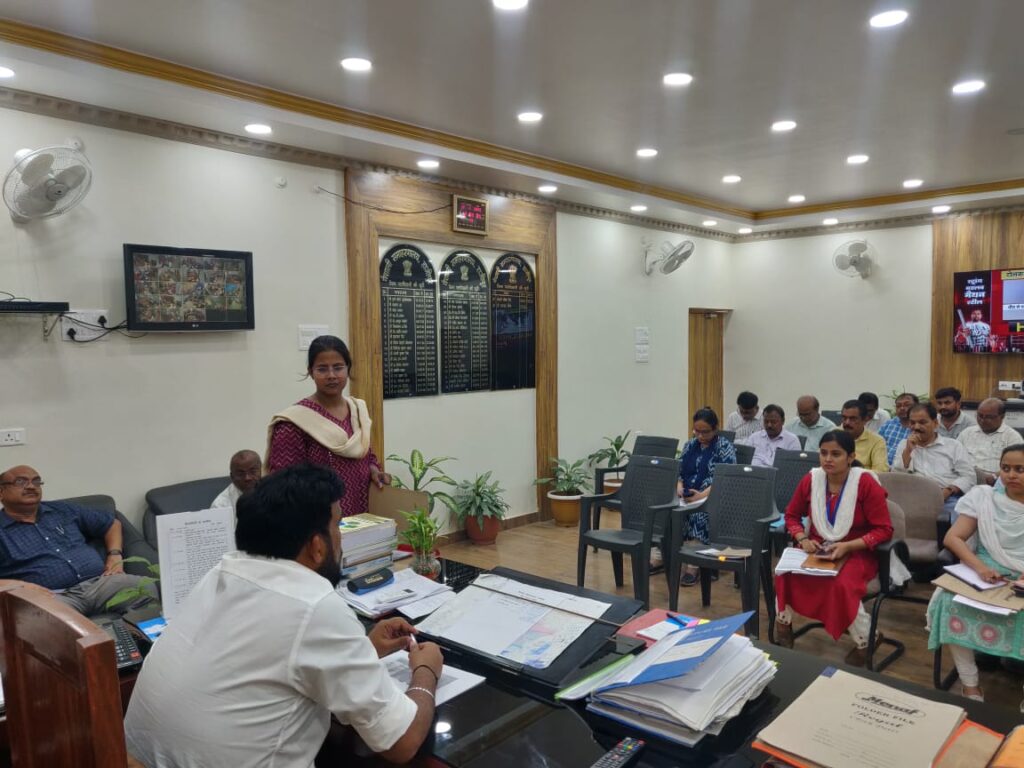 जिलाधिकारी के द्वारा भू- दस्तावेजों के डीजीटाईजेशन, अतिक्रमणवाद, एलपीसी निर्गम, म्यूटेशन परिमार्जन एवं अभियान बसेरा की समीक्षा की गयी।