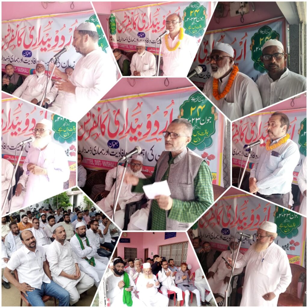 हाजीपुर / महुआ(वैशाली)उर्दू एक्शन कमिटी वैशाली के बैनर तले महुआ बाजार के देसरी रोड स्थित हाफिज तौकीर सैफी के आवासीय परिसर मैदान में शानदार ” उर्दू बेदारी कान्फ्रेंस ” का आयोजन किया गया।कार्यक्रम की अध्यक्षता कमिटी के जिलाध्यक्ष मोहम्मद अजीमउद्दीन अंसारी एवं संचालन कमिटी के सचिव एजाज आदिल ने की।कार्यक्रम की शुरुआत कमिटी के उपाध्यक्ष हाफिज मोहम्मद सईद तेगी के द्वारा कुरान की तिलावत और सचिव एजाज आदिल के नात ए पाक से किया गया।कार्यक्रम को संबोधित करते हुए मुख्य अतिथि पूर्व मंत्री शिव चंद्र राम ने कहा कि उर्दू भाषा के बगैर हिन्दुस्तान अधूरा है।इसके बिना हमारा काम नहीं चल सकता।उर्दू के विकास के लिए हम सदैव तत्पर हैं और जो भी मदद होगा वह हम करेंगे।यह मुल्क सभी का है।इस मुल्क के लिए हिन्दू,सिख,इसाई,बौद्ध ने जितना लहू बहाया है उससे कहीं ज्यादा मुसलमानों ने बहाया है तभी यह मुल्क आजाद हुआ है।