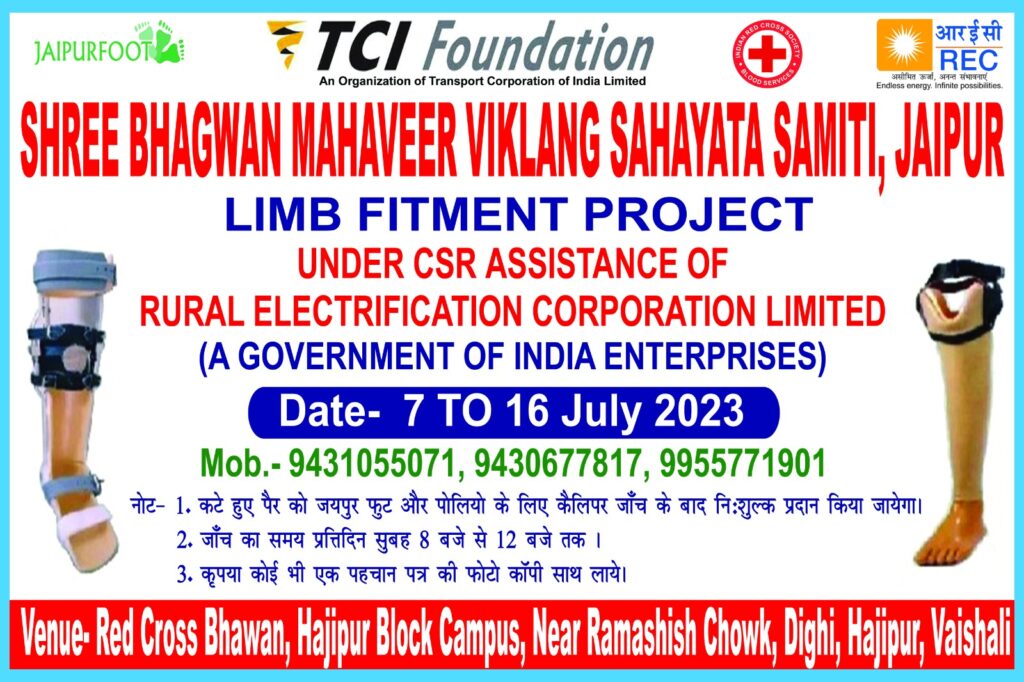 हाजीपुर में 7 जुलाई से 16 जुलाई तक लिंब फिटमेंट शिविर का आयोजन किया जाएगा।