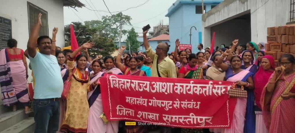 इससे पूर्व बिहार राज्य आशा संघ के बैनर तले विभिन्न प्रखंडों से जुटकर बड़ी संख्या में आशाकर्मी ने स्टेडियम गोलंबर से जुलूस निकाला। जुलूस नारा लगाते हुए सदर अस्पताल स्थित सिविल सर्जन कार्यालय पहुंचकर जमकर प्रदर्शन किया। प्रदर्शन के बाद आशाकर्मी धरना पर बैठ गये। मौके पर सभा का आयोजन किया गया। सभा की अध्यक्षता कल्पना सिन्हा ने की। सभा को पुनम कुमारी, रेखा कुमारी, अंजू कुमारी, अनीता कुमारी, बबीता देवी, संगम कुमारी, उषा कुमारी, प्रमिला कुमारी, प्रितिबाला कुमारी, पुष्पा कुमारी, राज कुमारी, शांति देवी, शोभा कुमारी, रेणु कुमारी, अर्चना झा, पुनम देवी, बबीता देवी, बेबी कुमारी, प्रभा कुमारी, समेत भाकपा माले के सुरेंद्र प्रसाद सिंह, स्कीम वर्कर के जिला प्रभारी महेश कुमार, कमल सिन्हा, नीलम शर्मा, राम कुमारी देवी, कुमारी शशिकला, राधा कुमारी, महासंघ गोपगुट के अजय कुमार समेत अन्य दर्जनों आशा कार्यकर्ताओं ने सभा को संबोधित किया।