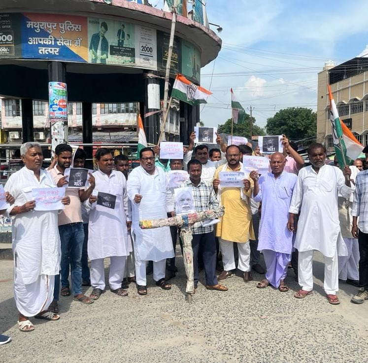 समस्तीपुर ज़िला कांग्रेस कमिटी ने किया पीएम का पुतला दहन