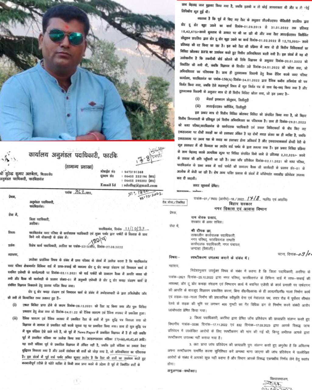 वैशाली !हाजीपुर, जिले के नवनिर्मित नगर पंचायत जंदाहा का गठन विगत महीनों हुई। जिसके लिए कार्यालय कार्यपालक पदाधिकारी की नियुक्ति भी हुई और शुरुआत में ही लुट खसोट की सिलसिला जारी हो गया। आखिर लूट खसोट क्यों न हो ? जिसके पदाधिकारी ही भ्रष्टाचार के गंगोत्री से नहा कर आए हो। जिनका पिछले कई बार निलंबन एवं वेतन रुकने की प्रक्रिया हो चुकी हो ,वैसे पदाधिकारी से उम्मीद ही क्या की जा सकती है। सूत्रों के मुताबिक जंदाहा नगर पंचायत में कार्यपालक पदाधिकारी के पद पर पदस्थापित दीपक कुमार झा जो कि पूर्व में सीतामढ़ी ,अररिया डुमरा ,फारबिसगंज जैसे नगरों में पदाधिकारी के पद पर रहते हुए पद का दुरुपयोग करने का आरोप लगाकर दंडित भी हो चुके हैं। बताया गया कि श्री झा कार्यपालक पदाधिकारी सीतामढ़ी एवं अतिरिक्त प्रभार डुमरा एवं बेलसंड के रहते हुए कोरोना काल में शराब पार्टी का आयोजन किया था ,जिसके आरोप साबित होने पर उन्हें निलंबित किया गया साथ ही साथ वेतन पर रोक लगाई गई। निलंबन हटने के बाद अररिया जिला के फारबिसगंज में कार्यपालक पदाधिकारी बने, वहां भी भारी अनियमितता कारण निलंबित किया गया। निलंबन मुक्त होने के बाद वे वैशाली जिले के जंदाहा नगर पंचायत के कार्यपालक पदाधिकारी नियुक्त हुए । जंदाहा में नियुक्ति के बाद भी अररिया जिला पदाधिकारी के अनुशंसा पत्र के आलोक में बिहार सरकार के अवर सचिव राम सेवक प्रसाद द्वारा अनियमितता की स्पष्टीकरण की मांग की गई है । स्पष्टीकरण न उपलब्ध कराने के स्थिति में पुनः एक बार निलंबन की प्रक्रिया पूर्ण होगी।इनके काले कारनामे कि लंबी सूची है ,ऐसे अधिकारी से विकास और स्वच्छ प्रशासन की उम्मीद नहीं की जा सकती ।सूत्रों ने बताया जब से श्री झा की नगर पंचायत के कार्यपालक पदाधिकारी के रूप में हुई है, योजनाओं का लूट जारी है ।यदि समय रहते संज्ञान नहीं ली गई तो जंदाहा नगर पंचायत का भी वही हाल होगा ,जो सीतामढ़ी सहित अन्य नगरों की हुई है ।