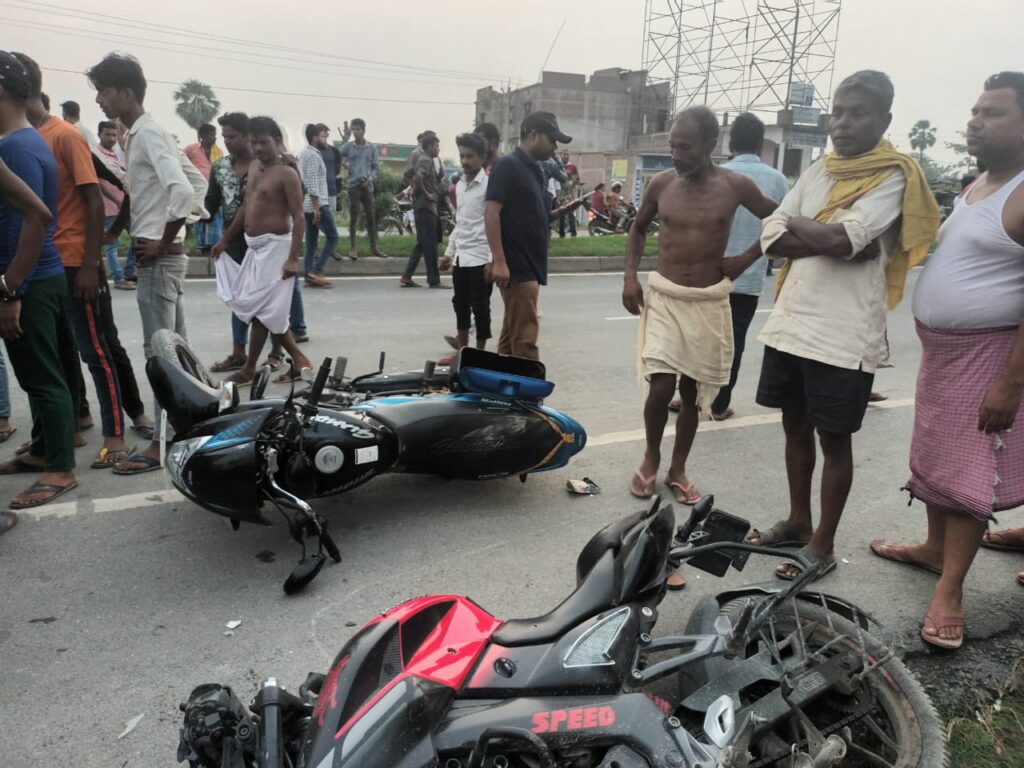 गोरौल थाना क्षेत्र के हाजीपुर मजफ्फरपुर मुख्य मार्ग NH 22 मुस्तफापुर हरशेर गांव धर्म कांटा के निकट सड़क दुर्घटना में सोमवार संध्या वाइक से लौट रहे एक 24 वर्षीय युवती की मौत घटनास्थल पर ही हो गयी . साथ ही दो लोग जख्मी हो गये . बताया गया है मुजफ्फरपुर की ओर से आ रही एक तेज रफ्तार बस ने दो बाइक सवार को पीछे से जोरदार ठोकर मारा जिससे एक बाइक सवार मृतिका संजना कुमारी की मौत घटनास्थल पर ही हो गई बाइक एवं बाइक चला रहा व्यक्ति बुरी तरह से जख्मी हो गया। वहीं दुसरा बाइक सवार भी बुरी तरह से जख्मी हो गया , मृतिका की पहचान जिले के नगर थाना क्षेत्र के कटरा मुहल्ला मस्जिद चौक निवासी रवि शंकर तिवारी के पुत्री संजना कुमारी के रूप में की गई है. वही उसके साथ वाइक चला रहे अधौगिक क्षेत्र थाना अंतर्गत पासवान चौक निवासी आदित्य कुमार भी बुरी तरह जख्मी हो गया. वही दूसरा जख्मी व्यक्ति थाना क्षेत्र के ही ग्राम मुस्तफापुर हरशेर निवासी मो असलम को इलाज के लिये प्राथमिक स्वास्थ्य केंद्र गोरौल में भर्ती कराया गया है. जहाँ से दोनों जख्मियों को बेहतर इलाज के लिए हाजीपुर रेफर कर दिया गया है. घटना के सम्बंध में बताया गया है कि मृतिका पीजी का एग्जाम देकर अपने मित्र आदित्य कुमार के साथ वाइक संख्या BR 31- AF, 2400 से मुजफ्फरपुर गया हुआ था. परीक्षा देकर लौटने के क्रम में ये घटना हरशेर गांव के निकट घट गई , पीछे से तेज गति से आ रही एक बस ने उसे ठोकर मार दिया जिससे उसका संतुलन बिगड़ गया और बगल से आ रही दूसरी वाइक BR 31 AD -8432 से टकरा गई. . बस का चालक बस लेकर भागने में सफल रहा. घटना की सुचना मिलते ही थाना अध्यक्ष मनोज कुमार एवं अवर निरीक्षक प्रशांत कुमार, प्रवीण कुमार, सहायक अवर निरीक्षक उमाकांत सिंह ने घटना स्थल पर पहुचकर शव को कब्जे में कर लिया .