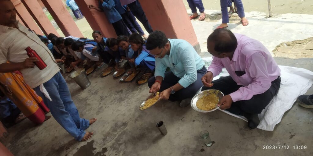 एसडीओ ने स्कूली बच्चों के साथ पंगत में बैठकर मिड डे मील का खाना चखा।