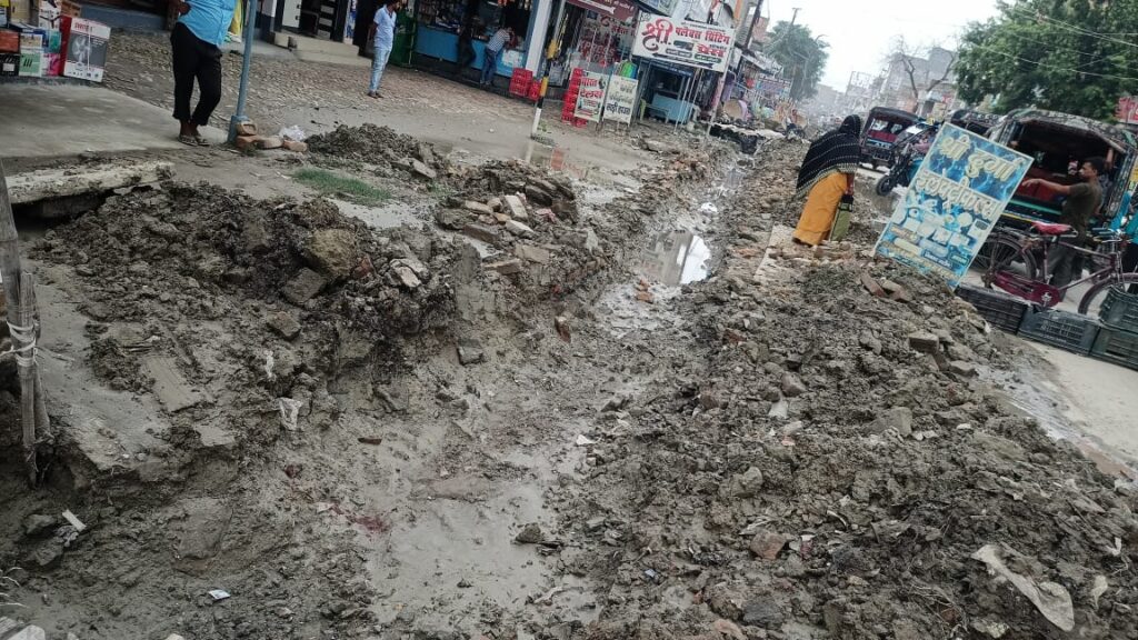 जलनिकासी हेतु चीरे गये नाला में पाईप नहीं डालने से आवागमन को परेशान स्थानीय दुकानदार, गृहस्वामी एवं राहगीरों ने शनिवार को दूसरे दिन भी अस्पताल चौक पर सड़क जाम किया।