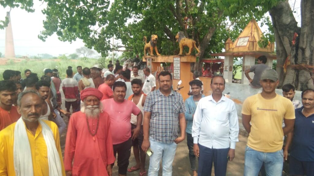 सूचना मिलते ही योगी ब्रह्म बाबा स्थान पर जूटी लोगों की भीड़, योगी ब्रह्म स्थान पर बने पत्थर जनित घोड़ों को तोड़े जाने से आक्रोश