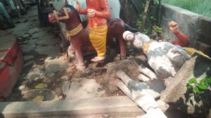 कड़ियों स्थित योगी ब्रह्म बाबा के पत्थर निर्मित घोड़ों को किया क्षतिग्रस्त
