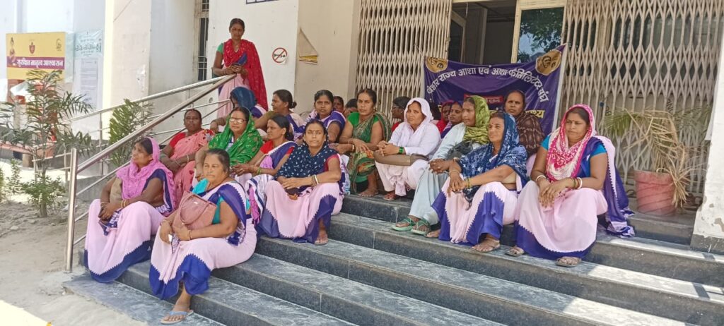 ताजपुर में आशा कार्यकर्त्ता एवं फैसिलिटेटरों का हड़ताल 9वें दिन भी रहा जारी