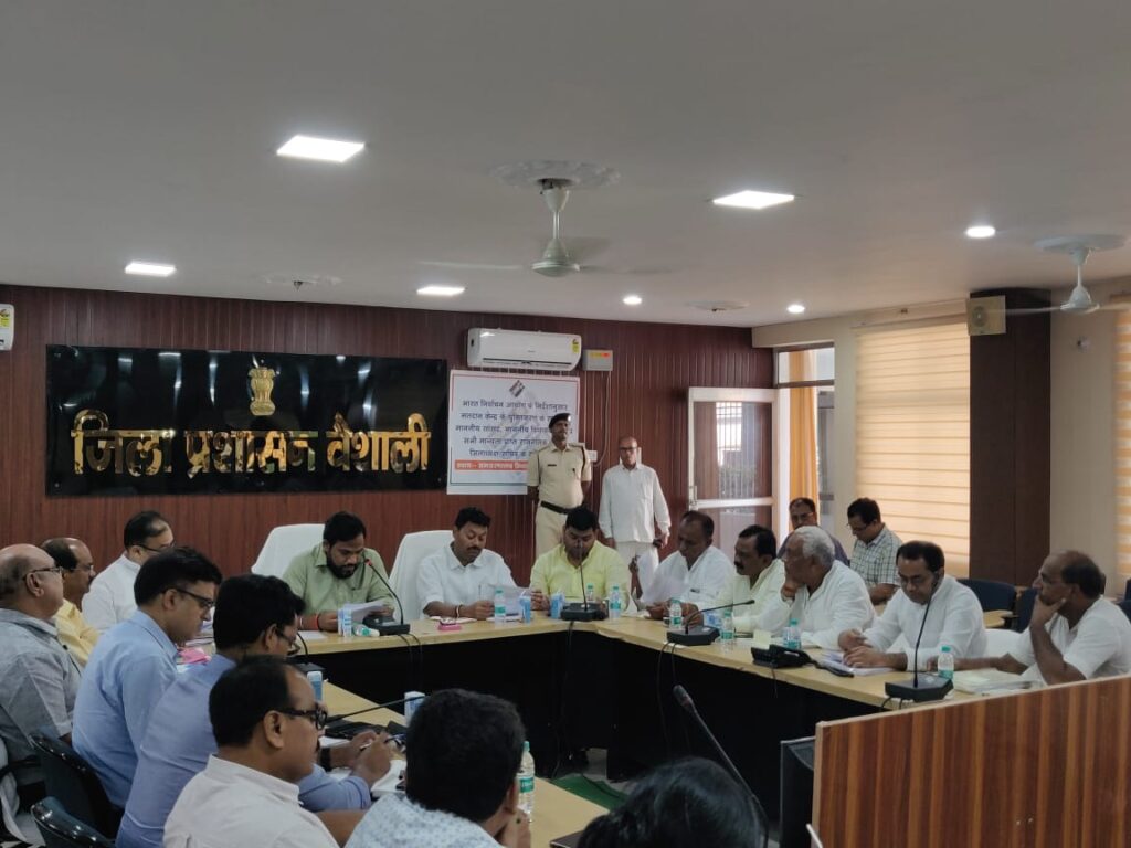 हाजीपुर : भारत निर्वाचन आयोग से प्राप्त निर्देश के आलोक में जिला निर्वाचन पदाधिकारी सह-जिलाधिकारी वैशाली श्री यशपाल मीणा के द्वारा वैशाली समाहरणालय सभागार में सभी मान्यता प्राप्त राजनीतिक दलों के जिलाध्यक्ष /सचिव माननीय सांसद के प्रतिनिधि एवं माननीय विधायक तथा विधायक प्रतिनिधि के साथ मतदान केन्द्र के युक्तिकरण संबंधी बैठक कर उपस्थित सदस्यगण को सभी जरूरी जानकारी दी गयी।