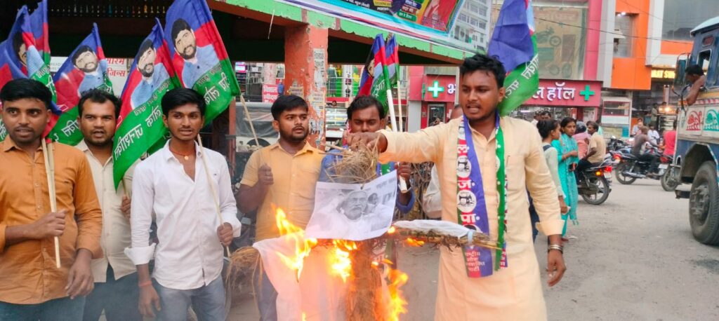 वैशाली:छात्र राष्ट्रीय लोक जनशक्ति पार्टी द्वारा जिला अध्यक्ष प्रकाश कुमार चंदन के नेतृत्व में छात्र रालोजपा के कार्यकर्ताओं ने महुआ में बढ़ती अपराधिक घटनाओं के विरोध में आक्रोश मार्च निकाला। जवाहर चौक स्थित रालोजपा कार्यलय से शुरू होकर थाना चौक,पातेपुर, समस्तीपुर रोड होते हुए गांधी चौक स्मारक के पास सभा में तब्दील होकर मुख्यमंत्री नीतीश कुमार का पुतला दहन किया। अपराधियो द्वारा पत्रकार,थाना प्रभारी एवं लालगंज में हुए गोलीकांड को लेकर आक्रोश मार्च निकाला गया। जिला अध्यक्ष ने कहा कि जब सुरक्षा करने वाले प्रशासन ही सुरक्षित नहीं है तो आम जनता का क्या होगा। जनता देख रही है अगामी लोकसभा एवं विधानसभा चुनाव में वोट से जवाब देगी। मुख्यमंत्री नीतीश कुमार को नैतिकता के आधार पर इस्तीफा दे देना चाहिए। अपराधिक घटनाएं कम नही होती है तो छात्र रालोजपा चरणबद्ध आंदोलन के लिए तैयार है। आक्रोश मार्च में मुख्य रूप से महुआ सांसद प्रतिनिधि छोटेलाल गुप्ता,छात्र रालोजपा के महुआ प्रखंड अध्यक्ष धर्मवीर कुमार पासवान,प्रखंड अध्यक्ष प्रमोद पासवान,मुन्ना कुमार,प्रभात कुमार पासवान,मनीष कुमार,विवेक कुमार,भूषण ठाकुर,अभिषेक कुमार सोनू,विक्की ठाकुर,सनोज कुमार ठाकुर, पुलिस पासवान,रत्नेश कुमार राज,राजा कुमार सहित कई कार्यकर्ता उपस्थित थे।