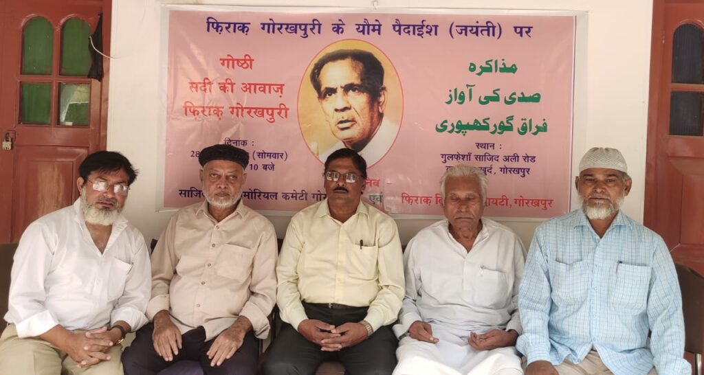 उर्दू के प्रसिद्ध शायर रघुपति सहाय फ़िराक़ गोरखपुरी की जयन्ती के अवसर पर साजिद अली मेमोरियल कमेटी एवम् फ़िराक़ लिटरेरी सोसायटी, गोरखपुर के संयुक्त तत्वावधान में एक परिचर्चा का आयोजन किया गया जिसका विषय था ” सदी की आवाज : फ़िराक़ ” गोरखपुरी। कार्यक्रम की अध्यक्षता प्रसिद्ध उर्दू स्कालर डा. एहसान अहमद ने तथा संचालन मोहम्मद फर्रुख जमाल ने किया।
