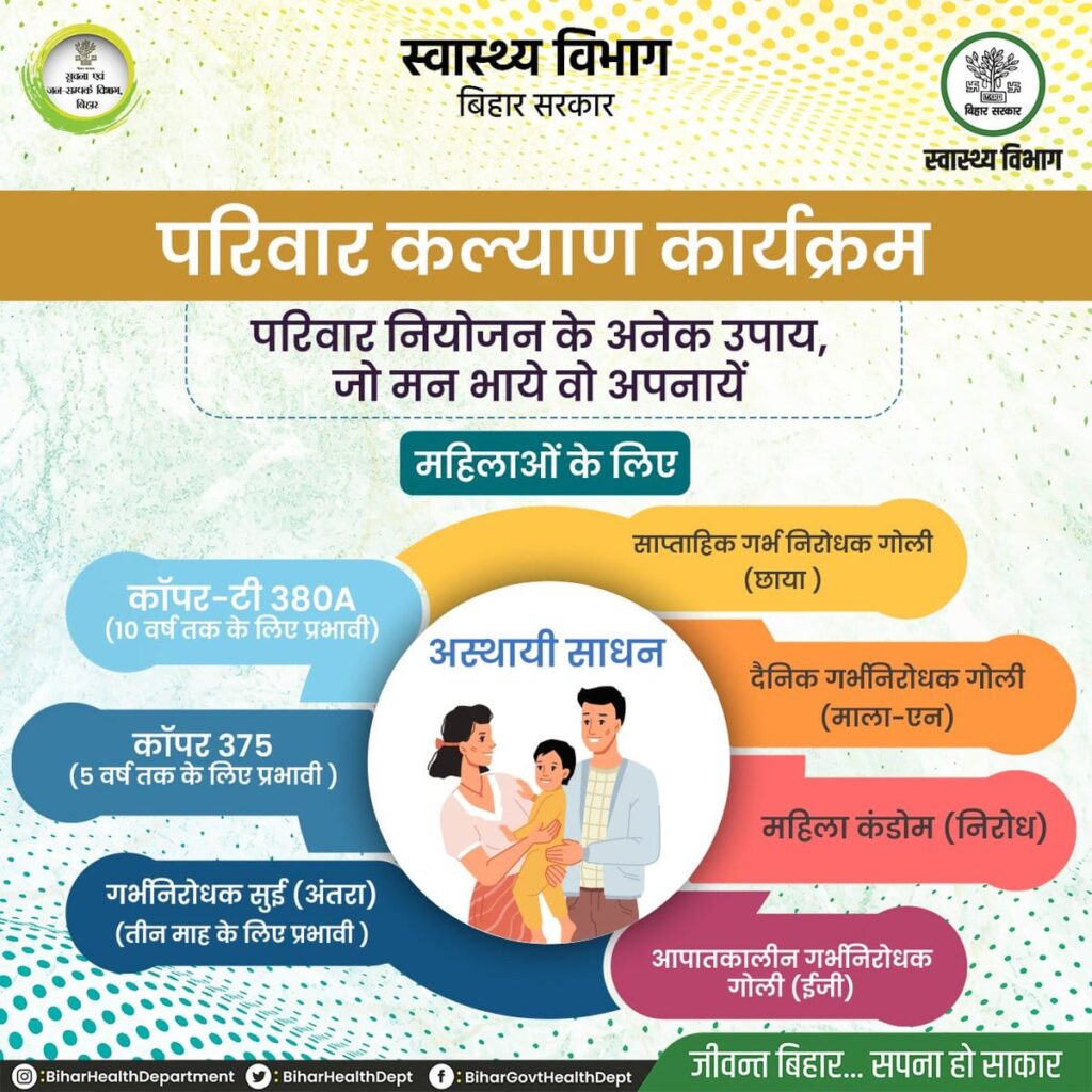 डीसीएम नंदन झा व अनुश्रवण पदाधिकारी अमानुल्लाह ने बताया कि सभी सरकारी चिकित्सा संस्थानों में निःशुल्क एवं सुरक्षित परिवार नियोजन के स्थायी व अस्थायी संसाधन उपलब्ध हैं। इसका लाभ उठाना चाहिए। उन्होंने बताया कि