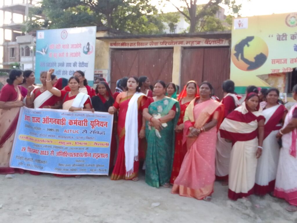 आंगनबाड़ी सेविकाओं की हड़ताल जारी, कर रहे धरना प्रदर्शन