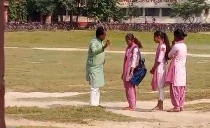 वैशाली ! महुआ, मुख्यालय के वैशाली उच्च माध्यमिक विद्यालय से एक वीडियो तेजी से वायरल हो रहा है ।जिसमें विद्यालय के प्रभारी द्वारा अपने ही विद्यालय की छात्रा को थोड़ी देर से विद्यालय पहुंचने पर जमकर पिटाई करते हुए दिखाया गया । यह वीडियो विद्यालय के एक शिक्षक द्वारा अपने प्रभारी के मनमानी रवैया को देखते हुए वायरल किया है। जिसमें आरोप लगाया कि प्रभारी प्रधानाध्यापक हमेशा तानाशाह रवैया अपनाते हुए शिक्षकों एवं छात्र-छात्राओं के प्रति हमेशा दुर्व्यवहार करते रहते है । विद्यालय के प्रभारी रामबालक राय द्वारा प्रति दिन अभद्र व्यवहार देखने को मिलता है । विद्यालय के शिक्षक ने बताया कि आज हमलोग इस विद्यालय मे मतदाता सूची मे नाम जोड़ने हेतु कैम्प मे भाग लेने गए हुए थे, उसी मे कुछ छात्रा परीक्षा देने पांच मिनट लेट से आई ,इस कारण ये भ्रष्ट प्रभारी इस छात्रा को किस प्रकार प्राइवेट अंग पर मार रहा है, वो गौर से आप लोग देखिए ।एक तरफ सरकार छात्रा की रक्षा के लिए बहुत से अभियान चला रही है और ये प्रभारी लड़की के पीछे के अंग पर बेरहमी से पिटाई कर रहा है । अब इस पर प्रशासन क्या कदम उठाती है, यह आगे देखने की बात है ।