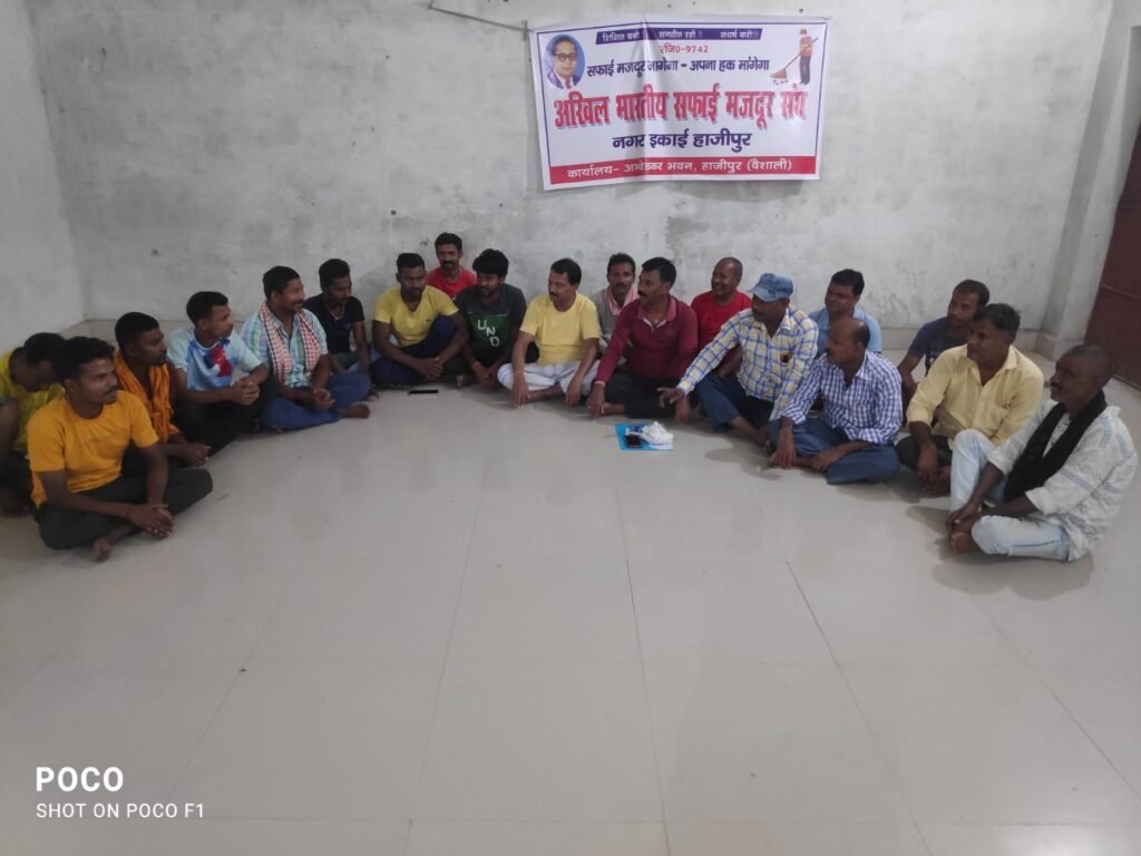 वैशाली : अखिल भारतीय सफाई मजदूर संघ जिला ईकाई की बैठक हाजीपुर नगर के अम्बेडकर भवन जिला कार्यालय में संघ के जिलाध्यक्ष दीपक राम एवं नगर अध्यक्ष राजीव रावत के संचालन में महत्वपूर्ण बैठक का आयोजन किया गया। बैठक मे संघ को मजबूत करने का संकल्प लिया गया। इस अवसर पर अखिल भारतीय सफाई मजदूर संघ का जिला कार्यकारिणी का गठन किया गया।संघ के जिला कार्यकारिणी अध्यक्ष उपेन्द्र राम, जिला उपाध्यक्ष राजेश मल्लिक, जिला महासचिव अजय कुमार, जिला कोषाध्यक्ष अशोक राम, जिला मंत्री गुड्डू मल्लिक, मुन्ना राम,जिला कार्यालय सचिव संतोष मुखिया जी, नगर उपाध्यक्ष रंजीत मल्लिक, शम्भू राम, मुन्ना जंगली,नगर सचिव साजन मल्लिक,जयमंती देवी, शीला देवी,आदि पदाधिकारी मनोनीत किया गया।इस अवसर पर संघ के जिला अध्यक्ष दीपक राम एवं नगर अध्यक्ष राजीव रावत ने संयुक्त रूप से कहा कि सफाई मजदूरो के हक और अधिकार दिलाने को लेकर संघ संकल्पित है इनका शोषण बर्दाश्त नहीं किया जायेगा। संगठन के माध्यम से सफाई कर्मचारियों के शोषण के खिलाफ पूरे जिला में आंदोलन तेज किया जाएगा।संघ के नेताओं ने राज्य सरकार से ठीकेदारी प्रथा को खत्म कर परमामेन्ट बहाली की मांग किया।इस अवसर पर सर्व सम्मति से अनेकों प्रस्ताव पारित किया गया।पारित प्रस्ताव मे हाजीपुर लालगंज,जन्दाहा,महुआ,चेहरा कला,महनार, पातेपुर नगर निकायों में कार्यरत सफाई कामगारों को बिहार सरकार द्वारा निर्धारित न्यूनतम मजदूरी देने, सभी सफाई मजदूरो के ईपीएफ कटौती की जांच कराने, रिक्त पदों पर सफाई कर्मियों की स्थाई बहाल करने, सफाई कार्य का ठेका प्रथा समाप्त करने का मांग जिला प्रशासन एवं राज्य सरकार से किया गया।