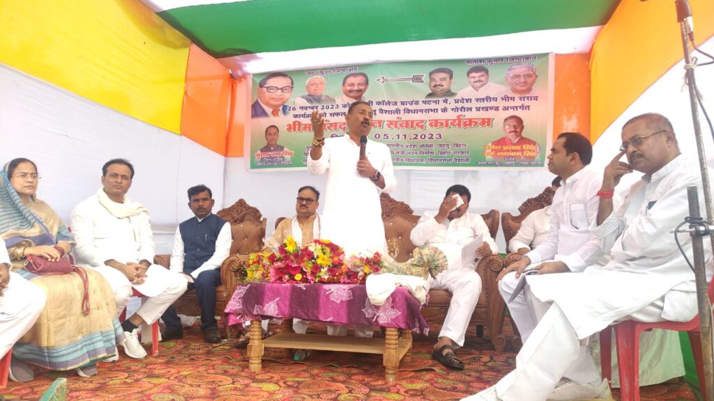 उक्त बातें सूबे के भवन निर्माण मंत्री अशोक चौधरी ने कही l श्री चौधरी गोरौल प्रखंड के रुसुलपुर तुर्की पंचायत स्थित डोमा परती परिसर में, जदयू कार्यकर्ताओं द्वारा आयोजित भीम जन संवाद कार्यक्रम में उपस्थित जनसमूह को संबोधित कर रहे थे l जदयू प्रखंड अध्यक्ष उमेश प्रसाद सिंह उर्फ भगवान सिंह की अध्यक्षता में आयोजित कार्यक्रम को संबोधित करते मंत्री श्री चौधरी ने उपस्थित लोगों से अपील करते हुए आगे कहा कि जो उनके भविष्य की चिंता करेगा वही उन तक विकास की योजनाएं पहुंचाएगा l इसलिए वे सभी मुख्यमंत्री नीतीश कुमार के नेतृत्व में सूबे बिहार के टोले-टोले में जाकर भीम संवाद पहुंचाने का कार्य कर रहें हैं l अत: अपने अधिकार दिलाने वाले संविधान की स्मिता बचाने के लिए सभी आगामी 26 नवम्बर को पटना के वेटनरी कालेज प्रांगण पहुंचकर मुख्यमंत्री नीतीश कुमार के हाथो को मजबूत करें और अधिकार छीनने वाली शक्तियों को करारा जवाब देकर अपनी शक्ति का एहसास कराएंl मौके पर उपस्थित जदयू के प्रांतीय अध्यक्ष उमेश कुशवाहा ने कहा कि केन्द्र की सरकार धर्म की राजनीति कर रही है, जाति, धर्म का उन्माद फैलाकर अपनी राजनीति की रोटी सेंकना चाहती है,युवाओं को कलम की जगह तलवार पकड़ाना चाहती है इसलिए अपने समाज के लोगों को सचेत रहने की जरुरत है। विधायक सिद्धार्थ पटेल ने कहा कि क्षेत्र में जल्दी ही बिजली की समस्या दूर होगी l बिजली विभाग के अधिकारियों से बात हो गई है और आवश्यक कार्यवाही भी तय हो गई है l