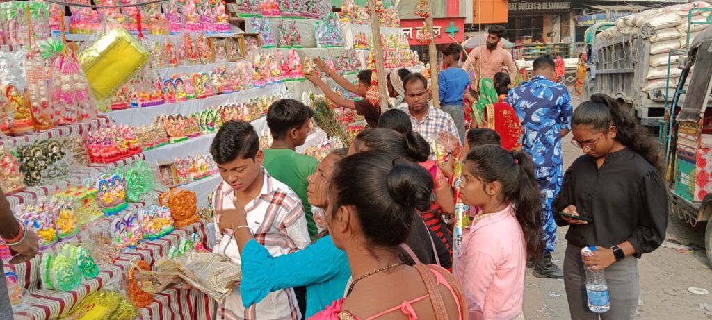महुआ गांधी चौक पर लक्ष्मी गणेश की मूर्तियां खरीदारी के लिए भीड़ से आपाधाभी का माहौल रहा। यहां एक दर्जन से अधिक दुकानदार मूर्तियों की दुकान छान रखे हैं। जिन पर खरीदारों की भीड़ हो रही है। हर तरह की मूर्तियां उपलब्ध है। दुकानदारों ने भी बताया कि यहां सभी तरह के ग्राहकों के लिए मूर्तियां उपलब्ध है।दीपावली पर हर घर में लोग धन वर्षा के लिए मां लक्ष्मी और गणेश की पूजा करते हैं। बताया गया कि मूर्तियां बाहर से मंगाई गई है। वहीं कुछ लोग चांदी तो कुछ सोने की भी मूर्तियां की खरीदारी की। महंगाई पर लोगों की आस्था भारी पड़ रही है। लोग अपने घर में लक्ष्मी और गणेश को ले जा रहे हैं। वही पूजन के लिए प्रसाद की भी खूब बिक्री हो रही है। गणेश जी के प्रिय भोजन लड्डू और मिठाई तो खूब बिक रही है। वहीं सामर्थ्य के अनुसार कुछ लोग शकरपाला, बताशा आदि भी खरीद रहे हैं।