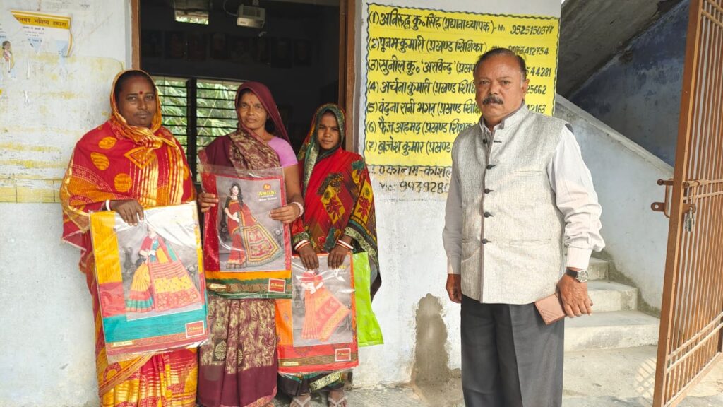प्रधानाध्यापक ने छठ पर्व के अवसर पर वस्त्र देकर रसोईया को किया सम्मानित