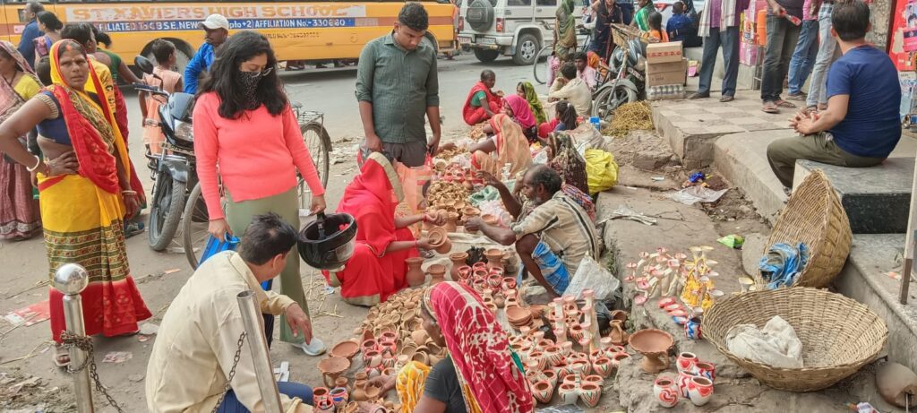 आधुनिकता के दौर में भी कायम है मिट्टी की बनी दीयों की विसात दीपावली पर मिट्टी के दीए से जगमग होंगे घर-मंदिर से लेकर खेत और खलिहान, रंग बिरंगी इलेक्ट्रिक बल्ब पर भारी पड़ रही मिट्टी के दीए महुआ। रेणु सिंह दीपावली पर दीपोत्सव को लेकर मिट्टी की बनी दीयों की मांग खूब हो रही है। हाट-बाजार से लेकर लोग शिल्पकारों के घर तक पहुंचकर मिट्टी के बनी दीए की खरीदारी कर रहे हैं। इस आधुनिकता की दौड़ में रंग बिरंगी इलेक्ट्रिक बल्बों पर आज भी मिट्टी के बनी दीयों की विसात कायम देखने को मिल रहा है। दीपावली पर घर मंदिर से लेकर खेत खलिहान को जगमग करने के लिए लोग मिट्टी के दीयों की खरीदारी जमकर कर रहे हैं। दीपावली के पूर्व संध्या पर शनिवार को यहां महुआ बाजार में मिट्टी के बनी दीयों की खरीदारी कर रहे लोगों ने बताया कि आधुनिक सफर में चाहे लोग जहां तक पहुंच जा, फिर भी हमे विरासत में मिली संस्कृति और पुरानी परंपरा कभी काम नहीं होंगी। बताया कि आधुनिकता की दौड़ में इलेक्ट्रिक के बनी रंग बिरंगी चमकीले बल्ब से लोग घर को सजा तो देते हैं लेकिन अपनी सौंधी मिट्टी से बनी दीयों की टिमटिमाती लौ सबको फीका कर देती है। लोगों ने बताया कि जब मिट्टी के दीए में सरसों या तिल के तेल डालकर जलाते हैं तो इसकी कोमल रौशनी एक नया उमंग और उत्साह पैदा करती है। कुल देवता से लेकर मंदिर और खेत खलिहान में जलते हैं मिट्टी के दीए: घर की महिलाएं कुल देवता से लेकर मठ मंदिरों और खेत खलिहानों में मिट्टी के दीए ही जलाती हैं। अंधकार पर प्रकाश का विजय पर्व दीपावली ही एक ऐसा पर्व है जो गृहस्थ परिवार में इसका विशेष महत्व होता है। कुल देवता पर महिलाएं पांच या सात दीए जलाकर अंधकार को दूर कर प्रकाश लाने के लिए मिन्नत करती हैं। इसके बाद अन्य देवी देवताओं मठ मंदिर, घर के हर दरवाजे, खिड़की, पेटी-बक्सा, काम आने वाली रोज मार के समान, मवेशियों के नाद, खूंटा के अलावे खेत खलिहान को भी इसी मिट्टी के दिए से जगमग कर उजाला प्रदान करने की प्रार्थना की जाती है। खासकर जिस खेत में फसल लगी है और जो फसल कट के खलिहान में आई है। उस पर गृहस्थ परिवार में दीए जलाकर अन्न धन भारी रहने की कामना की जाती है। दीए में जलकर नष्ट हो जाते हैं विषैले कीड़े: ऐसा माना जाता है कि दीपावली की रात जलाए गए दीए में विषैले कीड़े जलकर नष्ट हो जाते हैं। गांव में लोग खेत खलिहान तक मिट्टी के दीए जलते हैं। ताकि उसमें फसल को हानि पहुंचाने वाली विषैले कीड़े जलकर मर जाएं। इधर कुम्हार परिवार द्वारा बताया गया कि उन्हें मिट्टी के दीए बनाने में जो लागत आती है। वह तो मिल नहीं पाती लेकिन जब उनके बनाए गए दीए हर घर पर जलकर रोशनी बिखेड़ती है तो उसे देखकर जो खुशी मिलती है। वह जीवन की बड़ी कमाई जैसी लगती है। उन्होंने बताया क