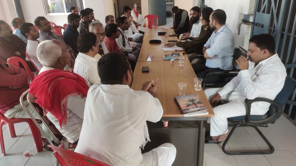 बैठक में नगर परिषद अध्यक्ष प्रतिनिधि संतोष चौधरी, मुखिया राजीव ठाकुर, भाकपा माले प्रखण्ड सचिव सुरेन्द्र प्रसाद सिंह, भाकपा के रामप्रीत पासवान, अनील शर्मा, जदयू के मो० अनवार हुसैन, कांग्रेस के अब्दुल मालिक, राजद के तबरेज आलम, राहुल राय, पूर्व प्रमुख सुरेश राय, कृष्णकांत उपाध्याय, समाजसेवी आदर्श कुमार पिंटू, राजकुमार राय अधिवक्ता राकेश कर्मशील, नगर पार्षद अजहर मिकरानी, राजकुमार राय, अशोक राय, समाजसेवी चंद्रशेखर राय, एसआई उमाशंकर कुमार सिंह आदि मौजूद थे। अध्यक्षता थानाध्यक्ष ब्रजकिशोर सिंह ने की।