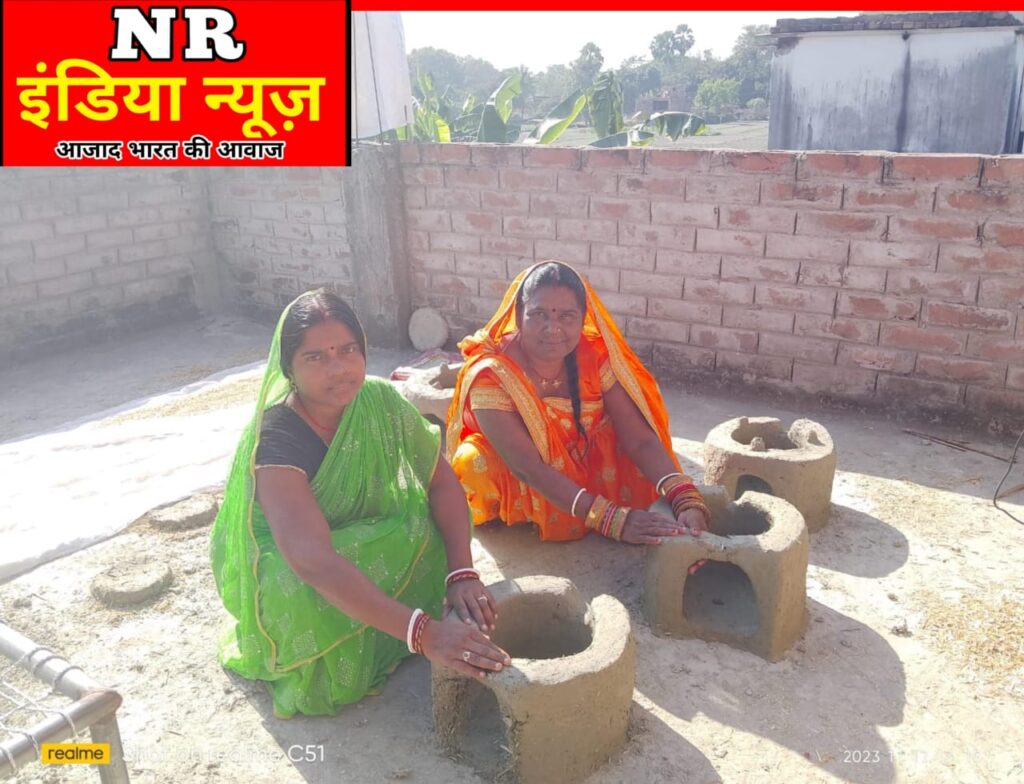 मिट्टी के चूल्हे का निर्माण और गेहूं को सुखाने में जुटी व्रतिया: