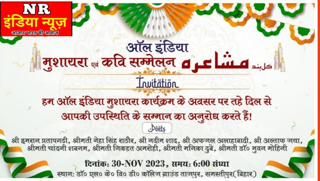 नवंबर 30 को शानदार ऑल इंडिया मुशायरा एवं कवि सम्मेलन