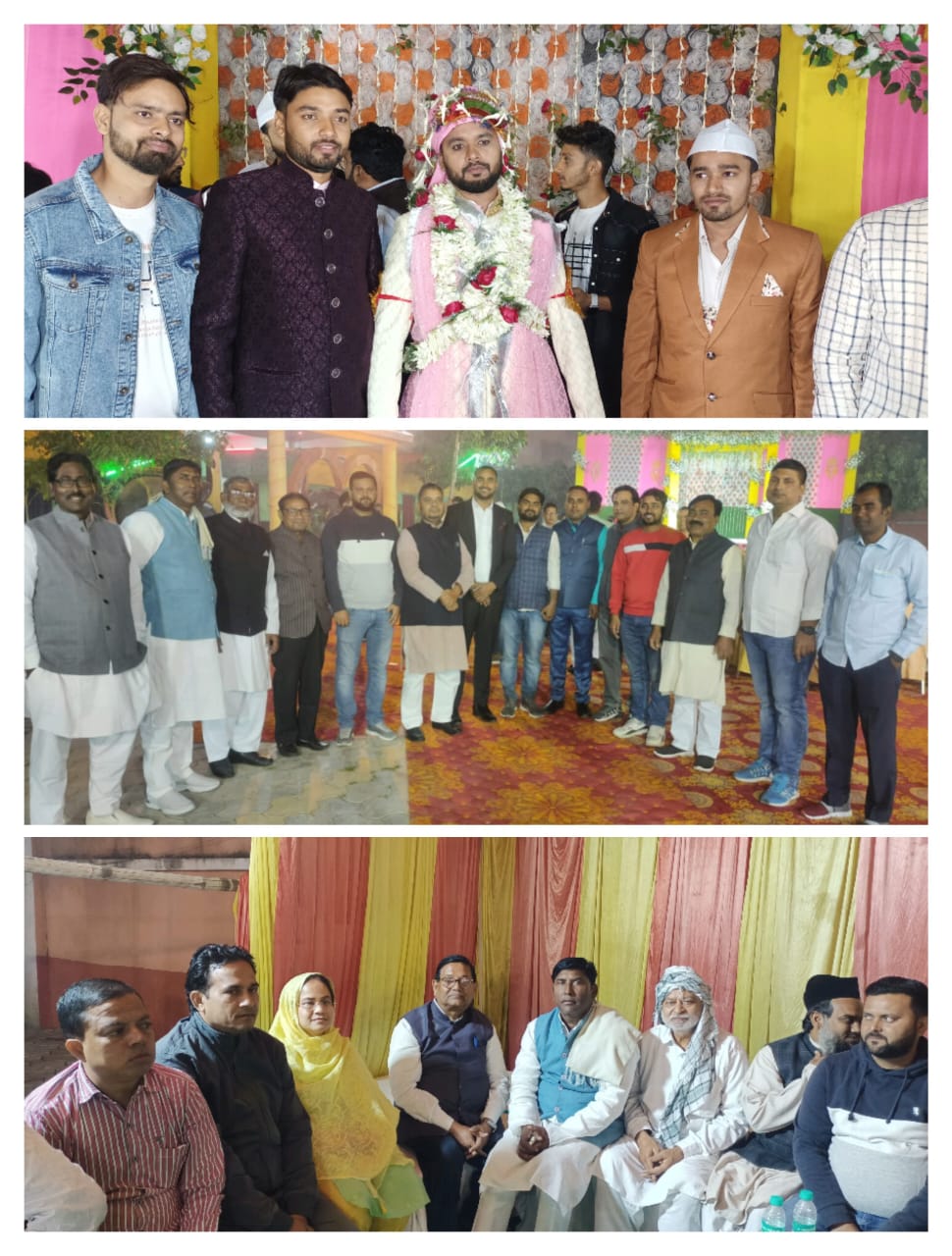 महुआ (वैशाली) नगर परिषद महुआ वार्ड नंबर 20 के निवासी हारून रशीद साहब के दुख्तर ए नेक शगुफ्ता परवीन का निकाह मोहम्मद साकिब इब्ने सनाउल हक साहब मकाम सकरा फरीदपुर पोस्ट ढोली जिला मुजफ्फरपुर के साथ बड़ी सादगी से वी सेलिब्रेशन महुआ में 22.11.2023 को देर रात में शांतिपूर्ण ढंग से संपन्न हुआ। निकाह दो गवाहों की उपस्थिति में हाजिर ए मजलिस के सामने हाफिज तौकीर सैफी ने पढ़ाया। इस शादी समारोह में ना कोई दिखावा किया गया ना बैंड बाजा बजाया गया। इस शादी समारोह में महज चंद बाराती और चंद मेहमानों ने शिरकत की। इस शुभ मौके पर पहुंची जदयू महासचिव डॉक्टर आसमा परवीन ने समाज के लोगों को सादगी से निकाह करने की अपील की। इससे बेटियों के शादी करने में आसानी होगी। नगर परिषद महुआ के पूर्व वार्ड पार्षद हाफिज तौकीर सैफी ने कहा ऐसी सादगी भरे विवाह से फिजूल खर्ची कम होता है। उसी पैसे से परिवार के लोग अच्छी एजुकेशन, अपने व्यापार, घर परिवार के लोगों की जिम्मेदारी और समाज के निचले तबके के लोगों के उत्थान में लगा सकते हैं। और इस्लाम भी हमें यही सिखाता है कि नबी की सुन्नतें पर अमल करें। सादगी के साथ किए गए निकाह से अल्लाह ताला भी खुश होता है। इस बज्मे निकाह में जदयू महासचिव आसमा परवीन, महुआ नगर परिषद के सभापति नवीन चन्द्र भारती,उप सभा पति रोमी यादव, रिटायर शिक्षक मोहम्मद प्रवेज आलम, वार्ड नंबर 23 के सामाजिक एवं कर्मठ नेता यकीन अहमद उर्फ ऊर्फी बाबू, पूर्व वार्ड पार्षद अभिषेक जायसवाल, मदरसा इस्लामिया कन्हौली के प्रिंसपल हाफिज सईद तेगी,मोहम्मद सद्दाम, मोहम्मद आफताब आलम,मोहम्मद अकबर, पूर्व वार्ड पार्षद हाफिज तौकीर सैफी, बीजेपी नेता मोहम्मद असगर आलम, मोहम्मद महमुद आलम ,मौलाना कमर आलम नदवी, मास्टर मोहम्मद दिलशेर, प्रोफेसर आफताब आलम नदवी,मोहम्मद अंसारुल हक,मोहम्मद अब्बास, महुआ मुकुंदपुर के पैक्स अध्यक्ष उत्कर्ष कुमार उर्फ बच्चा बाबू, मोअज्जम सरकार,मोहम्मद शमशाद आलम, हाजी फहीम उर्फ बब्लू बाबू,मोहम्मद सफदर, राजकमल समेत दोस्त रिश्तेदार अन्य गणमान्य लोगों ने शिरकत की और दुल्हा दुल्हन को दुआओं से नवाजा और शादी की मुबारकबाद पेश किया।