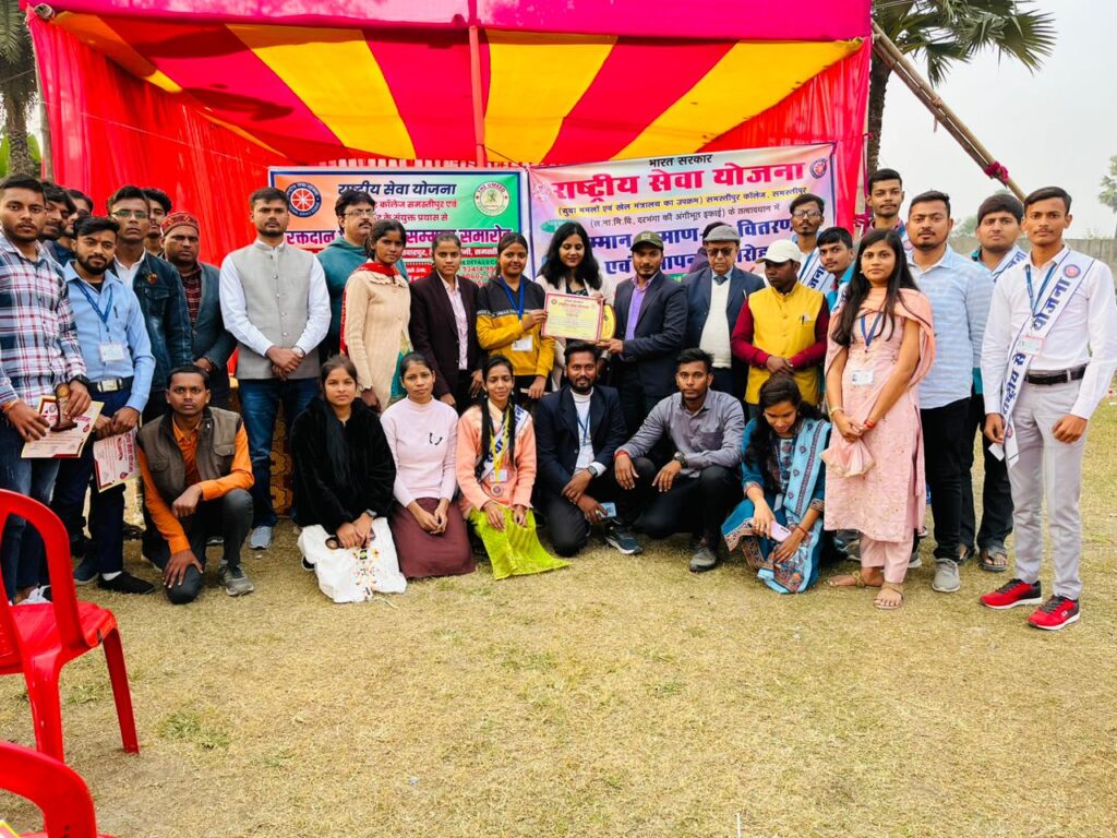 कार्यक्रम की अध्यक्षता वरीय प्राध्यापक डॉ. सच्चिदानंद तिवारी ने किया । नेतृत्व कार्यक्रम पदाधिकारी प्रो. महेश कुमार चौधरी ने किया। अध्यक्ष ने उपस्थित लोगों को संबोधित करते हुए कहा कि राष्ट्रीय सेवा योजना द्वारा आयोजित सात दिवसीय शिविर में स्वयंसेवकों का सर्वांगीण विकास करने में सहयोग मिला होगा । इन सात दिनों में जो कुछ भी सीखा है उन्हें जीवन में अपनाएँ । जिससे आपके परिवार , समाज, राष्ट्र एवं विश्व को कल्याण हो सके । दिनांक:- 16-12-2023 को राष्ट्रीय सेवा सेवा योजना एवं द उम्मीद के संयुक्त तत्त्वावधान में आयोजित भव्य रक्तदान शिविर में रक्तदान करने वाले रक्तदाताओं को स्मृति चिन्ह एवं रक्तवीर सम्मान-2023 से सम्मानित किया गया । साथ ही विभिन्न प्रतियोगिता के विजेताओं को मेडल एवं प्रशस्ति -पत्र देकर सम्मानित किया गया तथा शिविर को सफल बनाने में सहयोग करने वाले दलनायक अमरजीत कुमार एवं दलनायिका हेमा कुमारी को कार्यक्रम पदाधिकारी ने स्मृति चिन्ह एवं प्रशस्ति – पत्र देकर सम्मानित किया । वहीं शिक्षा कुंज , समस्तीपुर के निदेशक डॉ. अनिरूद्ध प्रताप को विशेष सहयोग के लिए सम्मानित किया गया । सामाजिक उत्थान से जुड़े विभिन्न प्रकार के कार्य करने के लिए द उम्मीद के सेन्टर कॉर्डिनेटर श्वेता गुप्ता , खुशबू एवं नवनीत को पुरस्कार के रूप में कार्यक्रम पदाधिकारी प्रो. महेश कुमार चौधरी , अनिरूद्ध प्रपाप एवं अमरजीत कुमार ने संयुक्त रूप से प्रदान किया । इस अवसर पर डॉ. लक्ष्मण यादव , डॉ. आशीष पाण्डेय , डॉ. मोनालिशा , डॉ. सौम्येन्दु मुखर्जी एवं डॉ. निर्मल सिंह समेत सैकड़ों लोग उपस्थित थे । राष्ट्र-गान के साथ शिविर का समापन किया गया ।