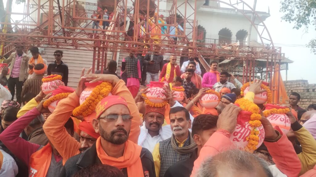श्री राम मंदिर से पूजित अक्षत कलश रामचौरा मंदिर हरिपुर से धूमधाम से पातेपुर लाया गया।
