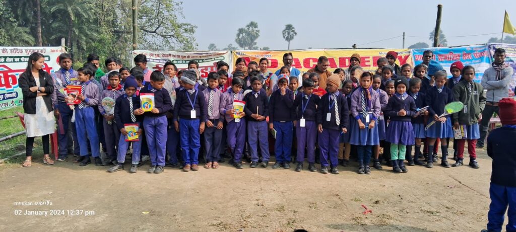 वैशाली : आशादीप सामाजिक सेवा संस्थान के तत्वाधान में ए डी एकेडमी के प्रांगण में तीन दिवसीय प्रतियोगिता का आयोजन किया गया जिसमें दिनांक 28 12 2023 को हिंदी एवं अंग्रेजी में लेखन प्रतियोगिता 29.12.2023 को खेल प्रतियोगिता एवं 30 12 2023 को जी ० के० प्रतियोगिता का आयोजन किया गया जिसमें आशादीप सामाजिक सेवा संस्थान के अध्यक्ष रामसोगारथ राय मुख्य अतिथि मनतोष कुमार सिंह रंजीत रोशन अखिलेश कुमार विद्यालय की व्यवस्थापक कृष्ण किशोर कमल सहायक शिक्षक चंदेश्वर राय बंधु कुमार विजय कुमार गुलशन कुमार सूरज कुमार एवं शिक्षिका रूबी देवी अनीता देवी पूजा कुमारी जुली कुमारी पुष्पांजलि कुमारी मुस्कान कुमारी तथा सभी छात्र-छात्राएं मौजूद थे। प्रतियोगिता का पुरस्कार वितरण विद्यालय का स्थापना दिवस 2 जनवरी के अवसर पर ए डी एकेडमी के प्रांगण में इस संस्था के अध्यक्ष रामसोगराथ राय विद्यालय की व्यवस्थापक कृष्ण किशोर कमल एवं शिक्षक शिक्षाओं के द्वारा बच्चों को सम्मानित किया गया.