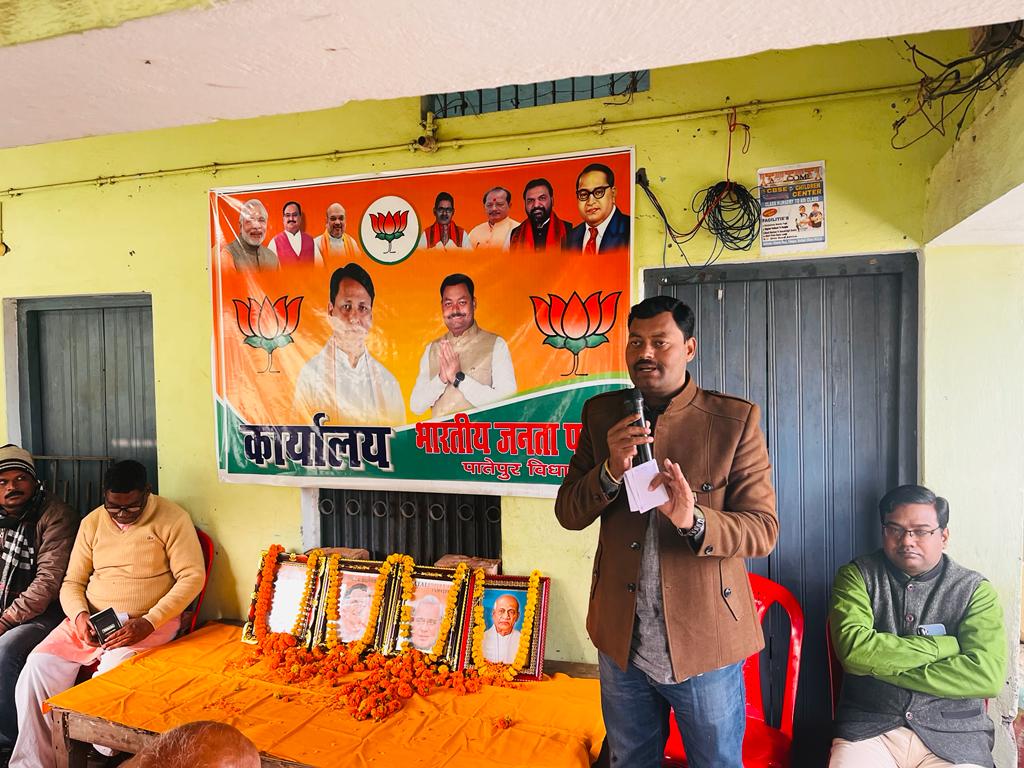 पातेपुर बाजार स्थित भाजपा कार्यालय में में विधानसभा स्तरीय भाजा कार्यसमिति की बैठक नगर मंडल अध्यक्ष सुनील कुमार सिंह की अध्यक्षता में सम्पन्न हुई। बैठक में उपस्थित मुख्य अतिथि स्थानीय भाजपा विधायक लखेंदर कुमार रौशन उर्फ लखेंदर पासवान ने कार्यकर्ताओं को संबोधित करते हुए कहा कि आने वाला लोकसभा चुनाव का समय बहुत ही कम बचा है ऐसे में कार्यकर्ता पुरी लग्न के साथ केंद्र सरकार के द्वारा चलाई जा रही कल्याणकारी योजनाओं को जन जन तक पहुंचाने का कार्य करें। बैठक में कार्यकर्ताओं ने संकल्प लिया कि पिछले चुनाव में केंद्रीय गृह राज्य मंत्री सह स्थानीय सांसद नित्यानंद राय की जीत पातेपुर विधानसभा क्षेत्र से जितने वोटों से हुई थी आने वाले लोकसभा चुनाव में मंत्री नित्यानंद राय को उस से दो गुना से अधिक वोट से जिताकर केंद्र में प्रधानमंत्री नरेन्द्र मोदी के हाथों को मजबूत करेंगे। बैठक में बुथ स्तर पर पार्टी को और सशक्त एवं मजबूत बनाने का निर्णय लिया गया। बैठक में अजब लाल साह, असगर अली, उमेश कुमार विभू, सुरेश सिंह, अशोक कुमार राय उर्फ टाइगर, नगर मंडल महामंत्री संजय साह इन्द्रजीत सिंह, रामानंद राय, अशर्फी सहनी , रंजीत रंजन, दयानंद सिंह, शिवचंद्र राम, शिवचंद्र राय, राकेश साह, राजकुमारी देवी, रामकुमार कुशवाहा, रंजीत पासवान, संजय साह, संजय पासवान, अनिल पासवान, रविकेश आर्य, नरेश राय,चमन गुप्ता, उमाकांत साहनी, संजय साह, निरंजन पासवान सहित सैकड़ों लोग उपस्थित थे।