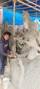 मां सरस्वती की प्रतिमा निर्माण जारी