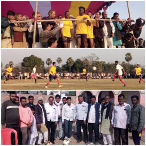 वैशाली पिछले वर्ष शहबाजपुर पुरैना फुटबॉल टूर्नामेंट का चैम्पियन रह चुके ब्लू स्टार फुटबॉल क्लब जलालपुर बीरभान ब्लॉक चेहरा कला , पंचायत शाहपुर खुर्द का खेल प्रखंड एवं पंचायत शाहपुर खुर्द के सौजन्य से आयोजित हुआ जिस का फुटबॉल खेल शाहबाजपुर पुरैना पातेपुर फुटबॉल टूर्नामेंट में 23 फरवरी 2024 को सेमीफाइनल का फुटबॉल खेल अमित एलेवेन फुटबॉल क्लब मुजफ्फरपुर के साथ फुटबॉल खेल का बेहतरीन प्रदर्शन किया खिलाड़ी अपने खेल खेलते हुए अपने समय काल के प्रथम हाफ में दोनों टीम ने -1 – 1- एक गोल कर अपने अपने टीम को बराबरी दिलाई तथा दूसरे हाफ के खेल खेलते हुए ब्लू स्टार फुटबॉल क्लब जलालपुर बीरभान की टीम के नाईजीरियन खिलाड़ी नंबर 11 और खिलाड़ी नंबर 9 ने -1-1- गोल पोल में दाग कर 2 गोल कर ब्लू स्टार फुटबॉल क्लब को 3 – 1 से जीत दिलाई और फाइनल में जगह बनाने में कामयाब रहे जिस का फाइनल मैच का आंखों देखी खेल दर्शक पुरैना फुटबॉल मैदान में 25 फरवरी 2024 को न्यू टाइगर फुटबॉल टीम भेरोखड़ा पातेपुर के साथ खेल देखेंगे आज के खेल में मुख्य अतिथि के रूप में खेल प्रेमी मुखिया शंभू शरण राय हलैया , मुखिया पति मनोज राय शाहपुर खुर्द , मुखिया भोला राय भेरोखड़ा , पूर्व मुखिया मुस्तफा हसन चांदपुर , जैनुल आबेदीन कोलकाता , जदयू लीडर इकराम उल हक , पूर्व जिला पार्षद सीता राम राय, राजद पार्टी के जिला वैशाली महासचिव सरफराज एजाज , डॉक्टर आफताब आलम चैनपुर , वी , आई , पी , पार्टी के प्रखंड चेहरा कलां अध्यक्ष नरेश सहनी , राजद लीडर मोहम्मद कामरान समेत मैदान के चारों तरफ खेल प्रेमी ने खेल का आनंद लिया ज्ञात हो कि इस खेल को कामयाब बना ने के लिए ब्लू स्टार फुटबॉल क्लब जलालपुर बीरभान के खेल प्रेमी बच्चे बूढ़े जवान एवं ग्राम निवासी एवं पंचायत निवासी ने तन मन धन जन से सहयोग किया जो अति सराहनीय रहा ।