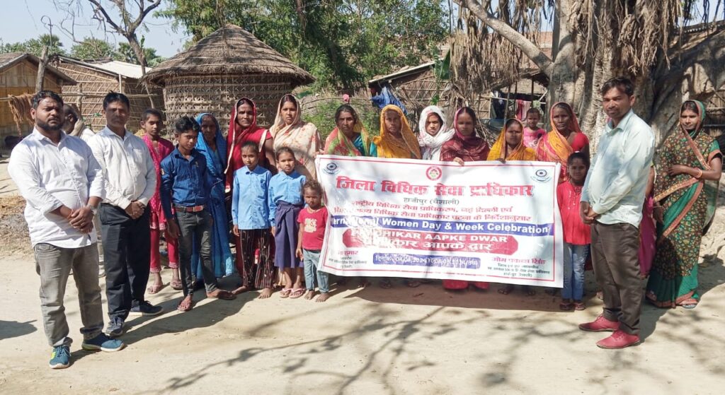 वैशाली राज्य विधिक सेवा प्राधिकार पटना से प्राप्त निर्देश के आलोक में जिला जिला विधिक सेवा प्राधिकार हाजीपुर वैशाली के तत्वाधान में जिला एवं सत्र न्यायाधीश सह अध्यक्ष ओमप्रकाश सिंह और अवर न्यायाधीश सह प्राधिकार सचिव राजेश कुमार के निर्देशानुसार पारा विधिक सेवक संतोष कुमार, अमरेश कुमार और विनोद रजक के संयुक्त नेतृत्व में लालगंज प्रखंड अंतर्गत लक्ष्मी नारायण पंचायत के बिलन्दपुर में “अंतर्राष्ट्रीय महिला दिवस एवं सप्ताह” के उपलक्ष्य में “प्राधिकार आपके द्वार” कार्यक्रम का आयोजन किया गया। कार्यक्रम के तहत महिलाओं को उनके अधिकार और प्राधिकार की ओर से दी जाने वाली सुविधाओं को बताया गया।इस दौरान पीएलभी संतोष कुमार ने बताया कि दुनिया भर में मार्च के पहले सप्ताह में अंतरराष्ट्रीय महिला सप्ताह की शुरुआत होती है और 8 मार्च को महिला दिवस मनाया जाता है।इसी को लेकर जिला विधिक सेवा प्राधिकार 4 मार्च से 8 मार्च तक महिला सप्ताह के तहत “प्राधिकार आपके द्वार” कार्यक्रम आयोजित कर रहा हैं। महिलाओं के सशक्तिकरण के लिए नारी सम्मान योजना,सबला योजना, उज्जवला योजना,समेकित बाल संरक्षण योजना,मुख्यमंत्री कन्या विवाह योजना,आयुष्मान योजना नल जल योजना ,विश्वकर्मा योजना,महिला उद्धमी योजना सहित केंद्र और राज्य सरकार द्वारा विभिन्न तरह की योजनाएं चलाई जा रही हैं । महिलाओं के सुरक्षा एवं सहायता को लेकर हर जिले में महिला थाना और महिला हेल्पलाइन की स्थापना की गई है।साथ ही लोगों को इसी महीने 9 मार्च को आयोजितहोने वाले राष्ट्रीय लोक अदालत की जानकारी और इससे होने वाली फायदों को भी बताया गया।