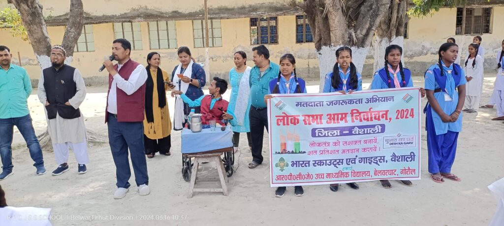 आप सभी प्रत्येक दिन विद्यालय जाकर विद्यालय की सभी गतिविधियों से जुड़कर लाभ उठाएं । सुरक्षित शनिवार के अंतर्गत डायरिया कैसे होता है और इसके बचाव के क्या उपाय है इसके बारे में विस्तृत जानकारी दी गई । खास करके डायरिया असंतुलित आहार लेने की वजह से होता है । जिसके कारण के दस्त की शिकायत हो जाती है। डायरिया से बचाव के लिए संतुलित आहार लेना बहुत ही जरूरी है। इस अवसर पर ओ आर एस घोल कैसे बनाएंगे इसके बारे में विस्तृत जानकारी दी गई ।यदि हमारे घर में ओ आर एस उपलब्ध नहीं है तो नमक और चीनी को पानी में मिलाकर कैसे ओ आर एस घोल निर्माण किया जाता है, इसके बारे में छात्र-छात्राओं को विस्तृत जानकारी दी गई। इसके साथ ही विद्यालय के गाइड द्वारा रात्रि चौपाल का आयोजन कर मतदान के प्रति जागरूकता फैलाई गई। गाइड के द्वारा अपने-अपने क्षेत्र में रात्रि चौपाल का आयोजन किया गया जिसके माध्यम से उपस्थित मतदाताओं को अपने मत की कीमत को बताते हुए मतदान करने की अपील की गई। एक मत की कीमत क्या होती है इसके बारे में विस्तृत जानकारी दी गई। इसके अंतर्गत अंशु कुमारी, दीपांशु कुमारी एवं रिचा रानी ने रात्रि चौपाल का आयोजन कर मतदाताओं को जागरूक करने का कार्य किया । साथ ही साथ विद्यालय में संचालित बाल संसद, मीना मंच ,यूथ क्लब, इको क्लब, गणित क्लब एवं विज्ञान क्लब के सदस्यों ने भी मतदाताओं को जागरूक करने का काम कर रहे है। इन कार्यक्रमों के माध्यम से प्रयास है कि वैशाली में मतदान का प्रतिशत निश्चित रूप से बढें। इस अवसर पर कुमार चंदन ,नीतू कुमारी ,राकेश कुमार, उमेश कुमार, रामबाबू राम, सुरभि कुमारी ,जय कृष्णा पाठक, राहुल कुमार चौधरी, पूजा रानी ,ऋतुराज ,मोहम्मद जमालुद्दीन ,अजीत कुमार ,सुषमा कुमारी ,पंकज कुमार सरोज कुमार सिंह सहित बीएड प्रशिक्षु शिक्षक शामिल हुए।