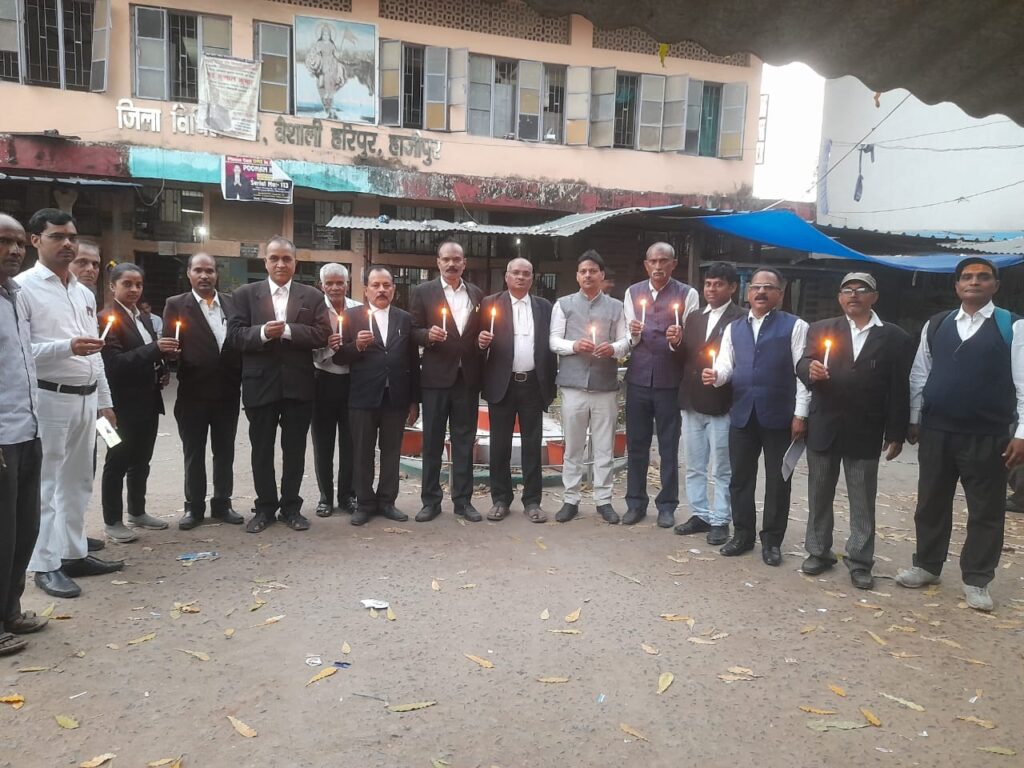 हाजीपुर। जिला विधिज्ञ संघ भवन हाजीपुर में विधिज्ञ संघ उपाध्यक्ष अधिवक्ता राजकुमार दिवाकर की अध्यक्षता एवं भाजपा बिहार प्रदेश मीडिया प्रभारी किसान मोर्चा हरेश कुमार सिंह के संचालन में बिहार राज्य का 112 वें स्थापना दिवस पर कैंडल जलाकर बिहार दिवस मनाया गया। इस अवसर पर अधिवक्ता राजकुमार दिवाकर ने कहा कि वर्ष 2010 में प्रथम बार बिहार दिवस मनाया गया था 22 मार्च 1912 को बिहार बंगाल राज्य से अलग हो कर अपनी समृद्ध इतिहास, संस्कृति एवं परंपराओं के साथ नित नए आयाम गढ़ रहा है। संचालन करते हुए भाजपा बिहार प्रदेश मीडिया प्रभारी किसान मोर्चा हरेश कुमार सिंह ने कहा कि देश के विकास में बिहारियों का अमूल्य योगदान है बिहार दिवस पर प्रत्येक बिहारवासी सद्भावना की विचारधारा के साथ सभी समुदाय अपनी विरासत पर गौरवान्वित होकर गौरवशाली इतिहास एवं महापुरुषों के योगदान पर फक्र महसूस करते हैं। जिला विधिज्ञ संघ अध्यक्ष शिवकान्त झा ने मुख्य रूप से संबोधित करते हुए कहा कि बिहार देश को सबसे अधिक आइपीएस, बैंक पीओ देने वाला राज्य है एवं बिहार की मिथिला पेंटिंग विश्व विख्यात है। बिहार दिवस सभी बिहारियों के मान सम्मान के साथ गौरवशाली अतीत को याद दिलाता है।इस अवसर पर अधिवक्ता प्रमोद कुमार सिंह, दिलीप कुमार सिंह, राकेश कुमार सिंह बन्धु, मिथलेश प्रताप सिंह, कन्हैया जी मुकुन्द, अमित कुमार तिवारी, अमित कुमार सिंह, रामाकांत भारती, हरेन्द्र ठाकुर,मोनी कुमारी, जितेन्द्र पाण्डेय, विनय कुमार झा, रौशन कुमार,सुपेन्द्र कुमार भारती, प्रद्युम्न कुमार सिंह, मनोज कुमार सिंह, अरविंद कुमार, अनीशचंन्द्र गांधी,उतम कुमार माथुर, जितेन्द्र मिश्रा,मो मोख्तार अहमद सहित काफी संख्या में उपस्थित अधिवक्ताओं ने बिहार दिवस पर संघ भवन में कैंडल जलाकर रौशन किया एवं बिहार वासियों को शुभकामनाएं दी।