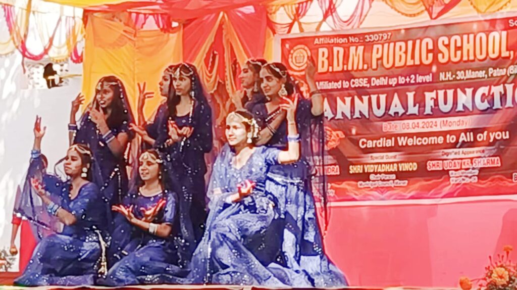 बी. डी. एम पब्लिक मनेर पटना का वार्षिक समारोह मनाया गया उदघाटन कर्ता एवं मुख्य अतिथि श्री भाई बीरेंद्र स्थानीय विधायक ने किया स्कूल के निदेशक विजय शंकर जी के द्वारा जानकारी दी गई। विद्यालय के छात्र छात्राओं के द्वारा बिहार की संस्कृति को दर्शाया गया। और बिहार का पारंपरिक लोक नृत्य की प्रस्तुति छात्रो के द्वारा किया गया जो बहुत ही सराहनीय रहा इस कार्यक्रम की नृत्य निर्देशिका राधा सिन्हा ने किया था। और गायन का निर्देशन कमलेश कुमार सिंह के द्वारा किया गया। साथ में संगत कलाकार देव सहाय प्रसाद , रवि शंकर मंडल ने भाग लिया छात्र छात्राओं के द्वारा झिझिया, कजरी, जट जटिन झूमर,होली बिहार गौरव गाथा की प्रस्तुति दी गई। इस कार्यक्रम का संचालन विद्यालय के शिक्षक श्री कमलेश कुमार के द्वारा किया गया।