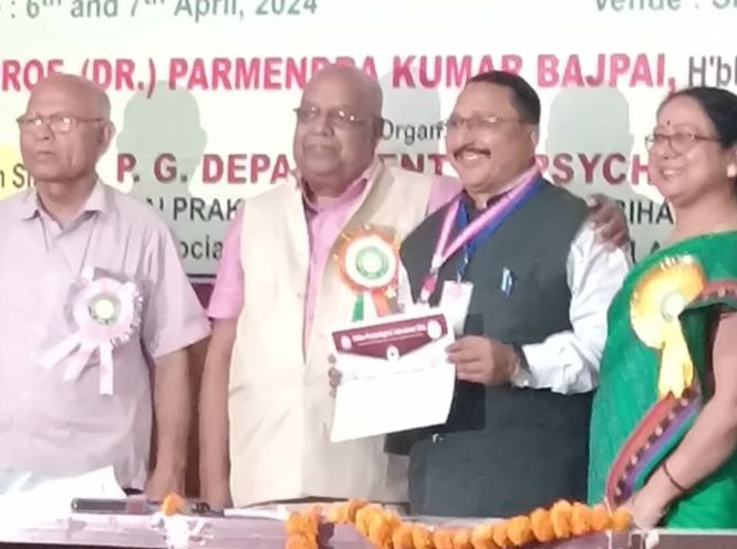 इंडियन साइकोलॉजी एसोसिएशन के तत्वावधान में अंतरराष्ट्रीय सेमिनार का आयोजन जय प्रकाश विश्वविद्यालय ,छपरा के मनोविज्ञान विभाग द्वारा किया गया।जिसमें डॉ. मनोज कुमार सिंह ,प्राचार्य सह विभागाध्यक्ष एन. के.एस महाविद्यालय,अंधड़ाबड़ चौक, वैशाली को उत्कृष्ट शोध प्रपत्र प्रस्तुत करने के लिए इंडियन साईकोलॉजी एसोसिएशन के अध्यक्ष प्रो. डॉ. तारणी सिंह एवं जय प्रकाश विश्वविद्यालय के मनोविज्ञान विभाग के विभागाध्यक्ष प्रो. डॉ. पूनम सिंह के द्वारा संयुक्त रूप से स्वर्ण पदक सम्मान से सम्मानित किया गया। इस अंतरराष्ट्रीय सेमिनार में देश-विदेश के मनोविज्ञान विशेषज्ञों ने भाग लिया ।डॉ. मनोज को स्वर्ण पदक सम्मान के लिए महाविद्यालय के शिक्षकगण ने बधाई दी। बधाई देने वालों में प्रो. विकेश कुमार, प्रो. प्रभुनाथ सिंह, प्रो. लाल बाबू राय ,प्रो. राजनाथ राय, प्रो. सत्य प्रकाश, प्रो. विभुषा सिन्हा, प्रो. कैलाशपति शर्मा ,प्रो. सुधीर मालाकार प्रो. अनिल कुमार,प्रो. जमिल अख्तर , डॉ. ललेंद्र कुमार यादव ,सहित अन्य शामिल हैं।