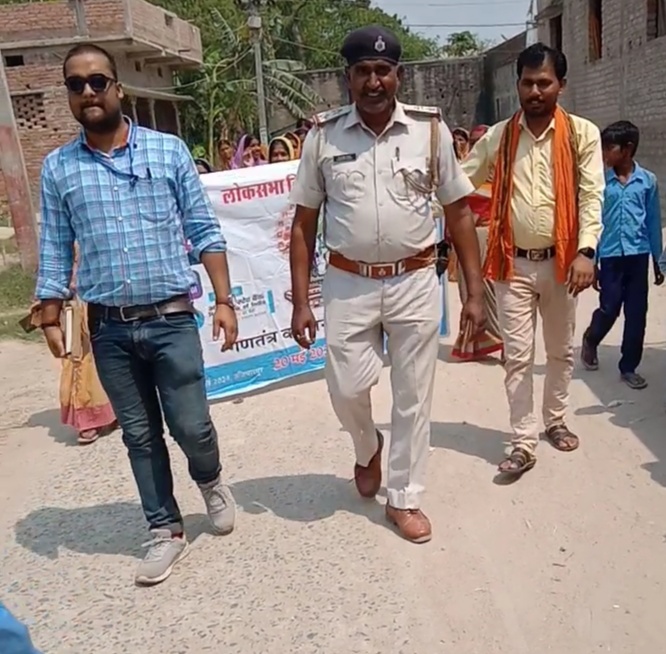यहां गोविंदपुर पंचायत में सेक्टर मजिस्ट्रेट कुंदन कुमार तथा पुलिस पदाधिकारी चौधरी जी के उपस्थित में मतदाता जागरूकता रैली निकाली गई। इस रैली में जीविका के गणेश कुमार, नीतू कुमारी, खुशबू कुमारी, शांति कुमारी, कविता कुमारी, सरिता कुमारी, शर्मिला कुमारी, नीतू कुमारी अधिनिया एम सक्रिय भूमिका निभाई। यह मतदाता जागरूकता रैली गोविंदपुर बाजार से निकलकर विभिन्न मार्गो से होकर बस्तियों तक पहुंची और वोटरों को अपने अधिकार के बारे में बताया। उनके द्वारा एक-एक वोट की कीमत बताई गई। यह भी बताया गया कि उनके एक वोट काफी उपयोगी है अच्छे प्रतिनिधि चुनने और सरकार के लिए अपने मताधिकार का प्रयोग अवश्य करें। वे रैली में वोटरों को जागरूकता से संबंधित विभिन्न नारे लगा रहे थे। इधर फुलवरिया पंचायत में स्वच्छता कर्मियों तथा कन्हौली में सेविकाओं द्वारा मानव श्रृंखला बनाकर मतदाताओं को जागरूक किया गया। बीडीओ संजीत कुमार ने बताया कि इस बार वोटर जागरूक हो और वोटिंग प्रतिशत बढ़े। इसके लिए विभिन्न अभियान चलाकर मतदाताओं को जागरूक किया जा रहा है। वही मतदाताओं को बूथ पर सुविधा के लिए सारे प्रबंध भी किया जा रहे हैं।