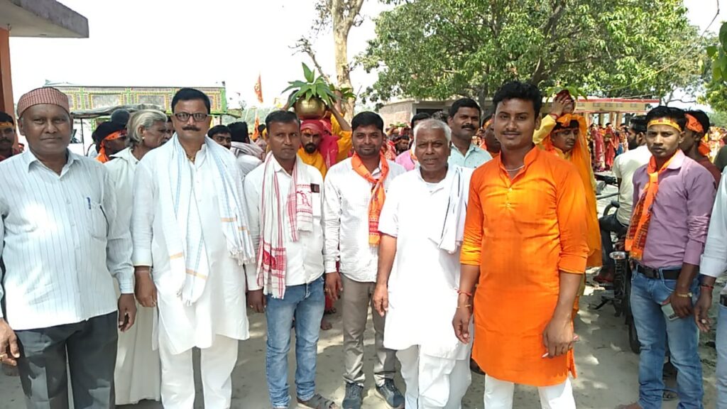 वैशाली !महुआ ,प्रखंड क्षेत्र के जहांगीरपुर सलखन्नी पंचायत अंतर्गत मध्य विद्यालय ,चांदपुरा नवीन के पास अष्टयाम यज्ञ का आयोजन रामनवमी के शुभ अवसर पर किया जा रहा है। यह अष्टयाम यज्ञ 24 घंटे के लिए ” हरे कृष्णा हरे राम ,गौरी शंकर सीताराम” महामंत्र से गूंजायमान होगा। अष्टयाम यज्ञ से पूर्व यहां के नर नारियों द्वारा भव्य कलश शोभा यात्रा का आयोजन किया गया ।कलश यात्रा का नेतृत्व चंद्रदेव राय, रामसागर सिंह, जदयू नेता उमेश कुमार सिंह,प्रमोद कुमार सिंह,पंचायत समिति सदस्य प्रतिनिधि पप्पू कुमार चौधरी ,डॉ.संजय राय, डॉ. अशोक राय, गणेशी राय ,शंभू कुमार सिंह, मनोरंजन सिंह, राज किशोर सिंह ,विद्यानंद सिंह, विपिन सिंह ,पंकज सिंह ,किशोरी राय ,विकास कुमार राय, संतोष कुमार ,बिट्टू सिंह सहित अन्य शामिल थे।कलश यात्रा पंचायत भवन परिसर में स्थित राम जानकी मंदिर से जहां पर पहलेजा से लाए गए पवित्र गंगाजल को पंडित दीपक झा के मंत्रोच्चारण के बीच मुख्य यजमान इं० कैलाश कुमार राय एवं गीता देवी ने संकल्प लिया। तत्पश्चात हजारों की संख्या में कलश यात्रियों के कलश में गंगाजल भर कर गाजे बाजे के साथ जहांगीरपुर सलखन्नी ,गौसपुर ,बरहर चौक, समसपुरा ,सुपौल होते हुए चांदपुरा यज्ञ स्थल पर पहुंची। वहां पर पूरे विधि विधान के साथ कलश को यज्ञ मंडप में स्थापित किया गया। अष्टयाम यज्ञ रामनवमी के शुभ अवसर पर बुधवार के पूर्वाहन में आरंभ होगी, जो बृहस्पतिवार के पूर्णाहुति होकर समाप्त होगी। शाम में नगर भ्रमण एवं रात्रि में भोजपुरी लोक गायक रामाशंकर यादव द्वारा विवाह कीर्तन का आयोजन किया गया है।इस आयोजन को लेकर क्षेत्र में भक्तिमय वातावरण बना हुआ है। इसमें सक्रिय भूमिका निभाने वाले में पप्पू कुमार, मनीष कुमार, कैलाश राय ,रामप्रवेश राय, रोशन कुमार, रजनीश कुमार कारू, मनीष सिंह ,लालदेव पासवान, जितेंद्र राय ,सुनील सिंह ,सुधीर सिंह ,सुमन कुमार, देवेंद्र मांझी, दौलत मांझी ,अनिल मांझी, विकास राय, वीर चंद्र राय भगत जी, विक्रम ,संतोष, चंदन, मुकेश सहित अन्य शामिल है।