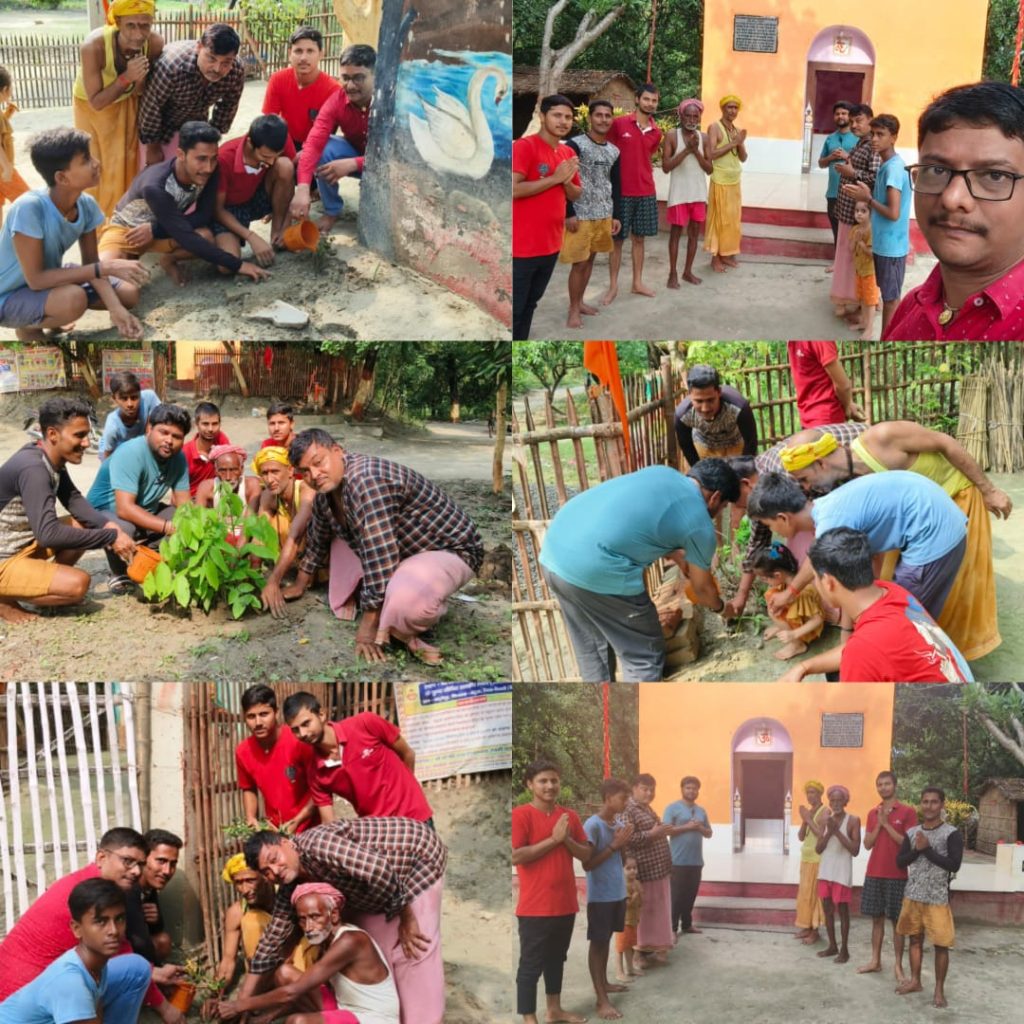 महुआ प्रखंड के अंतर्गत गौसपुर चकमजाहिद पंचायत के गद्दोपुर गांव में स्थित श्री श्री 1008 बाबा केशवानंद स्वामी जी पुण्य जीवित समाधि स्थल रासमंडल मंदिर परिसर में मंदिर के पुजारी श्री उमेश कुमार के नेतृत्व में पौधारोपण किया गया। इस अवसर पर मंदिर परिसर में तीन दर्जन से अधिक फूल का पौधा रोपण किया गया। जिसमें गुलाब, उड़हुल,करौटन,हजारा,कनइल तथा कई प्रकार के फूल के अलावा तुलसी, अमलतास का पौधा लगाए गए हैं। मंदिर के पुजारी श्री उमेश कुमार ने बताया कि पेड़ ही जीवन है। पेड़ पौधों के बिना जीवन की परिकल्पना भी नहीं की जा सकती है। यदि पेड़ पौधे ना हो तो हम सब सांस नहीं ले सकते हैं इसलिए जीवन के लिए हम सब को संकल्प लेना चाहिए। वृक्षारोपण कार्यक्रम चलाते रहना चाहिए । आपलोग भी अपने आस – पास के मंदिर परिसर में पौधरोपण करके सुंदर बनाइए। मंदिर के पुजारी उमेश कुमार ने बाबा के दरबार में आए हुए भक्तों के लिए उज्जवल भविष्य की कामना किए।इस मौके पर अभय मिश्रा, राजकमल जायसवाल,मनीष शुक्ला, सागर महतो,अभिषेक मिश्रा, मोहन कुमार सिंह, छोटू कुमार,शिवम मिश्रा सहित अन्य लोग शामिल थे।