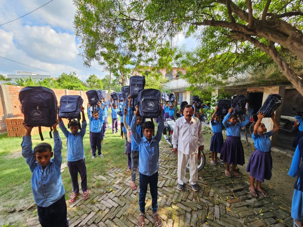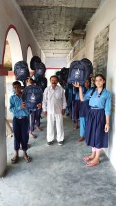 विद्यार्थियों के बीच में बांटा गया बैग एवं नोटबुक ।